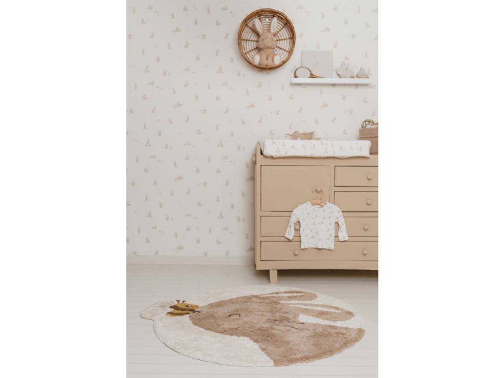 Vytvořte v dětském pokoji teplou a přívětivou atmosféru s koberečkem značky Little Dutch! Tento roztomilý koberec ve tvaru králíčka v jemném béžovém odstínu je ozdoben malým detailním motivem včelky na jeho čumáčku. Hravý design dodá místnosti útulnou a veselou náladu, na které si vaše dítě rádo sedne nebo bude hrát.