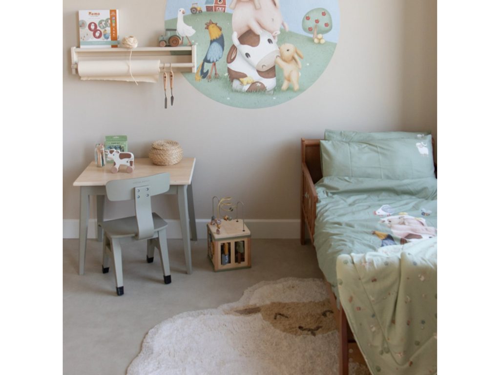 Roztomilý koberec ve tvaru ovečky z kolekce Little Dutch Farma vnese do každého dětského pokoje teplo, měkkost a hravou atmosféru. Je neuvěřitelně hebký na dotek – jako byste chodili po obláčku. Ideální místo pro hraní, čtení i první krůčky. Skvělý pro hraní na zemi, odpočinek nebo jako měkký doplněk vedle postýlky Vyroben ze 100% organické bavlny, příjemné a bezpečné pro dětskou pokožku Protiskluzový latexový podklad zajišťuje stabilitu a brání posouvání koberce po podlaze Roztomilá ovečka dodá pokoji hravost a hřejivý vzhled Vyroben z udržitelných přírodních materiálů bez škodlivých příměsí Koberec je součástí designové kolekce textilu a doplňků Little Dutch Farma. Složení: 100% organická bavlna, spodní část 100% latex Rozměry: 118 × 80,5 cm Možno prát v pračce.