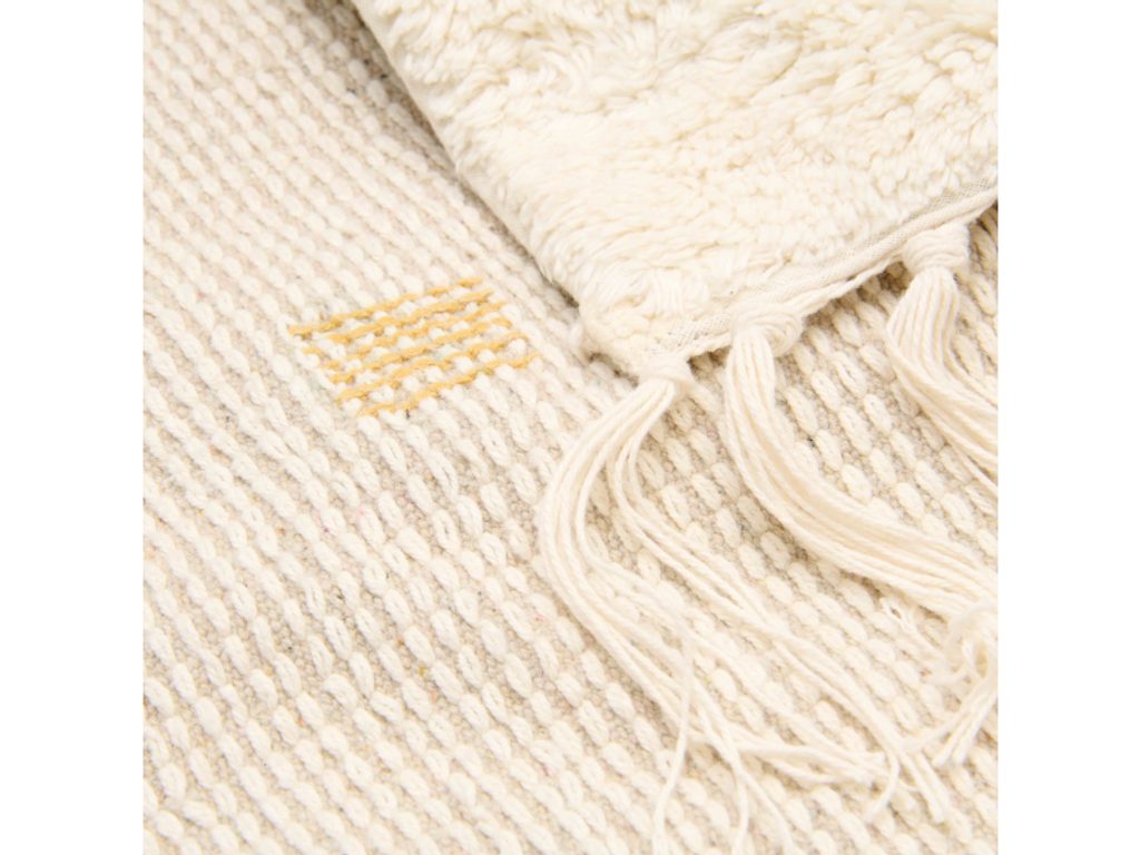 Koberec je vyroben ze 100% organické bavlny s vysokou gramáží, což zaručuje měkkost a odolnost. Protiskluzová latexová vrstva na spodní straně zajistí stabilitu a bezpečí při používání. Díky tomu, že je koberec pratelný v pračce a vhodný do sušičky, je velmi snadný na údržbu.