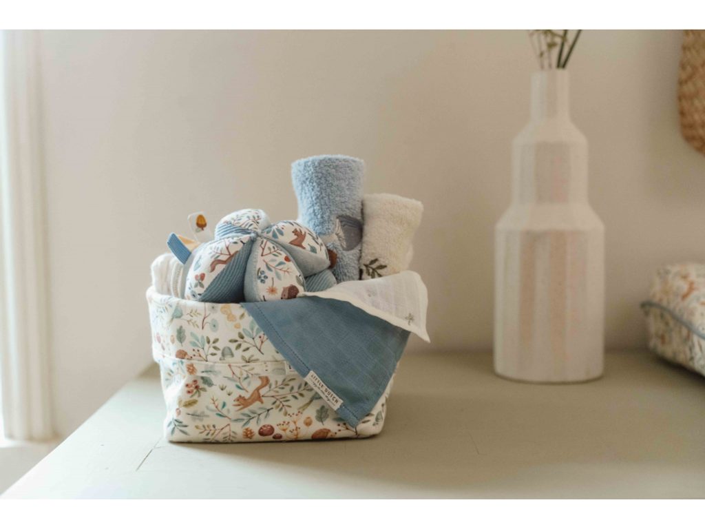 Košík s motivy ze života v lese je praktickým a krásným doplňkem do dětského pokoje. Vyrobený z pevné organické bavlny, je ideální pro přehledné uložení věcí, které potřebujete mít po ruce při péči o miminko, nebo pro rychlé uskladnění drobných hraček. Tento košík, součást designové kolekce Little Dutch Forest Friends, je inspirovaný přírodou a životem v lese. Jeho rozměry jsou 15 x 15 x 15 cm.