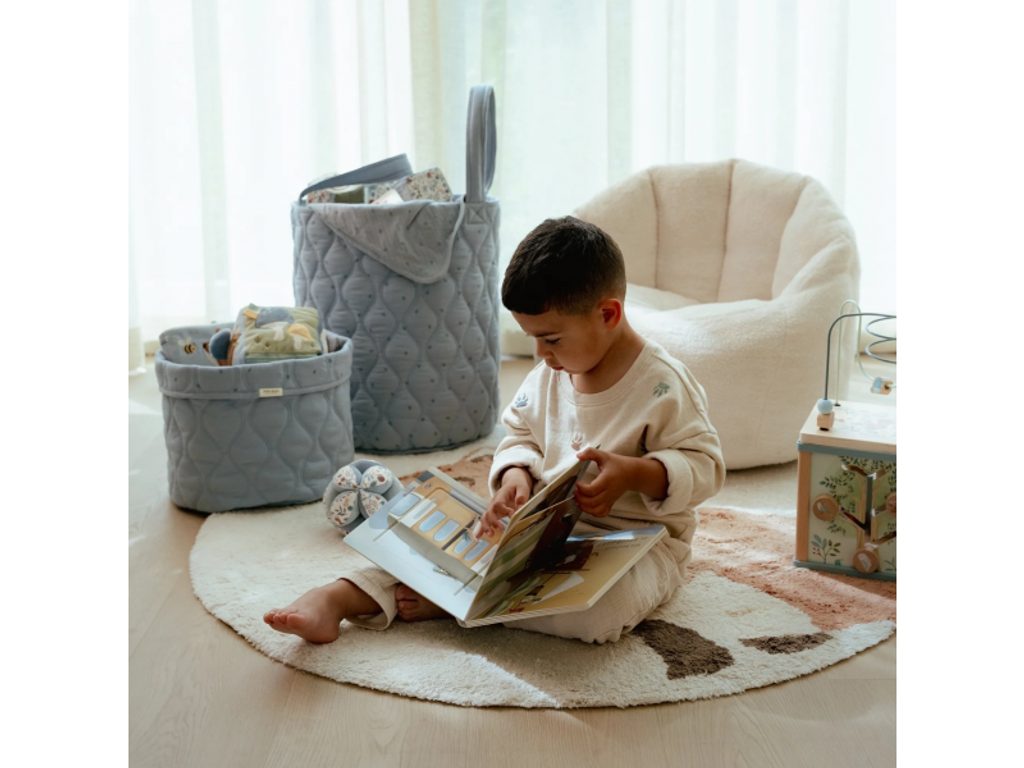 Jemný potisk na tomto bavlněném košíku přináší do dětského pokoje klidnou eleganci – a zároveň praktičnost, kterou oceníte každý den.