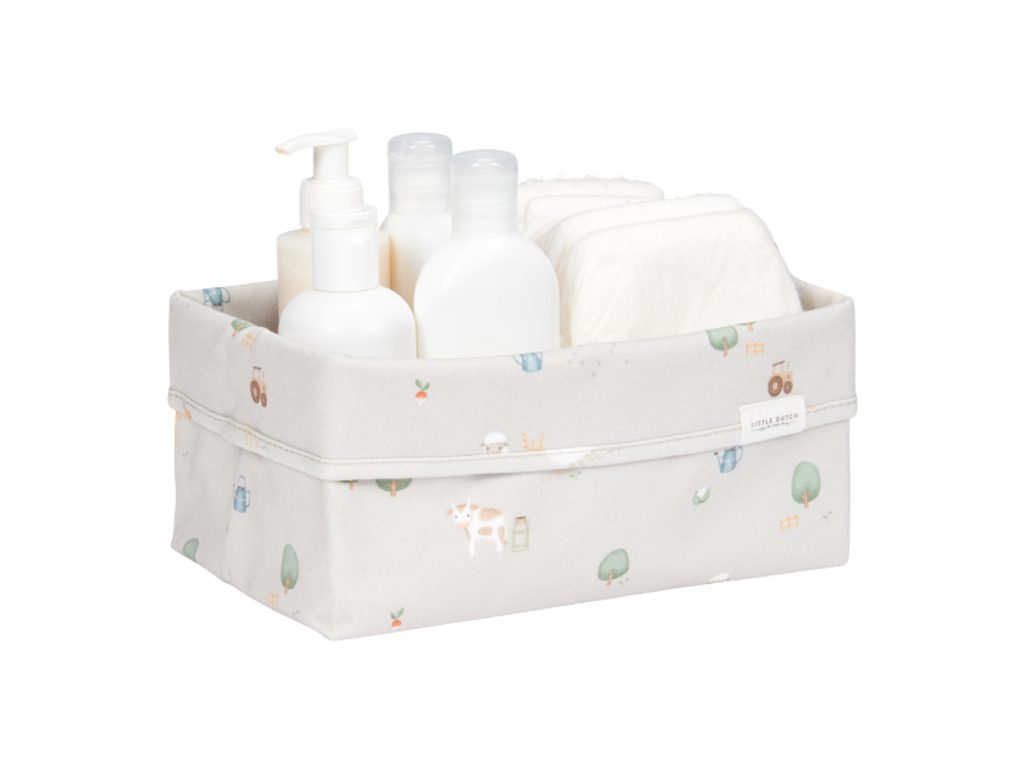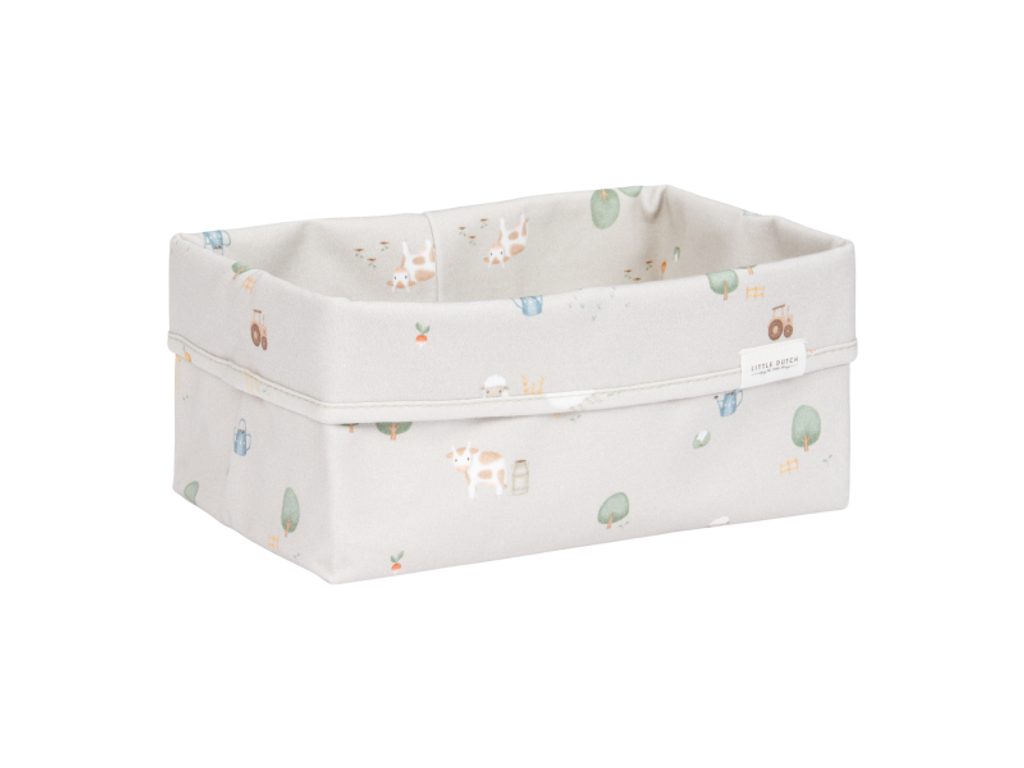 Košík v krásném designu kolekce Little Dutch Farma je vyroben z pevného bavlněného materiálu. Využijete jej pro přehledné uložení všeho, co potřebujete mít po ruce při každodenní péči o vaše miminko. Košík bude zároveň krásným doplňkem na přebalovacím pultu či poličce v dětském pokoji. Rozměry: 25 x 15 x 15 cm
