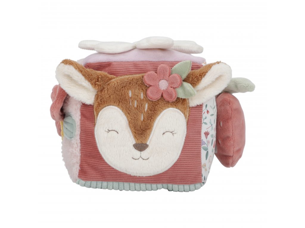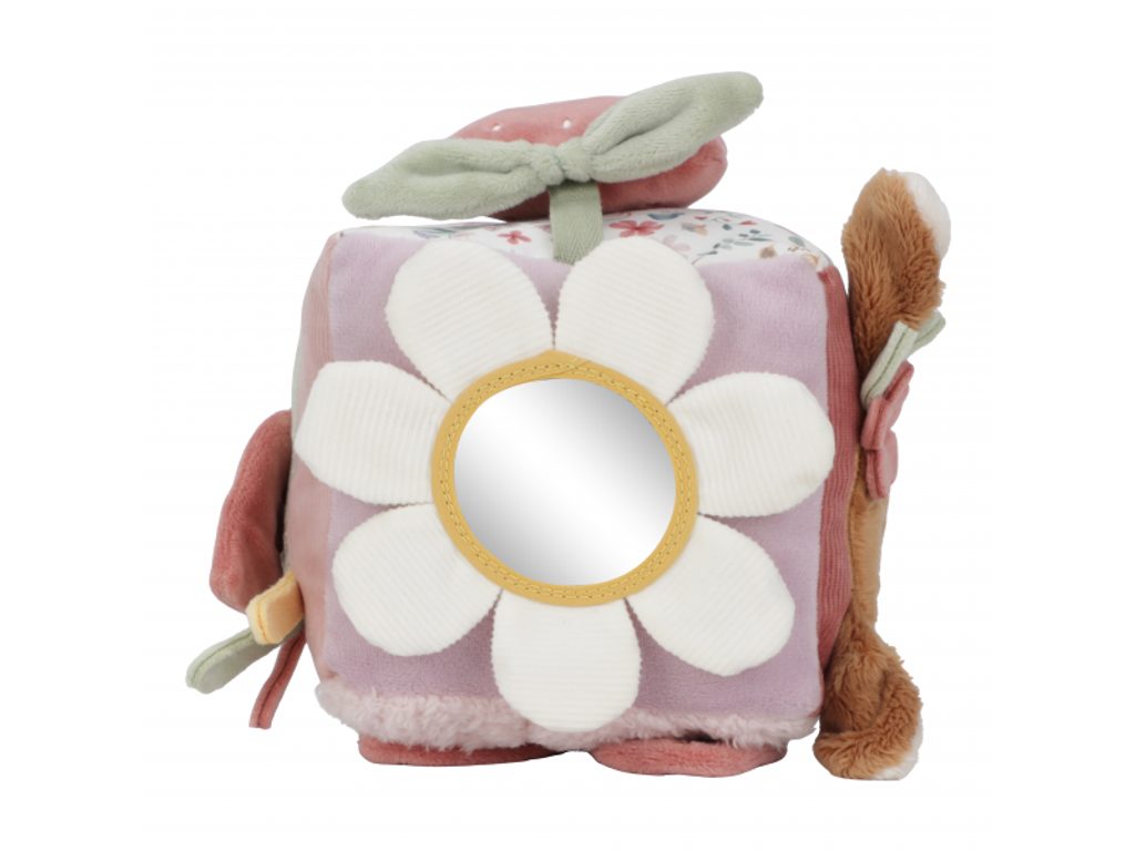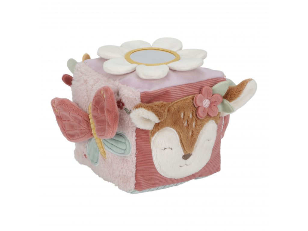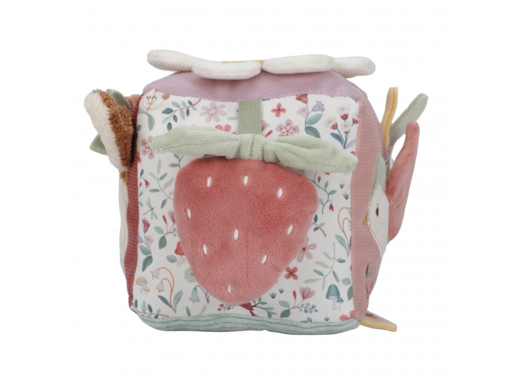 Měkká plyšová kostka s půvabnými motivy ze života na zahradě je navržena tak, aby se snadno uchopila malými dětskými ručičkami. Různorodé textury, připevněné hračky a vyšívané ilustrace lákají dítě k objevování, a kostka navíc jemně cinká při pohybu. Tato hračka je součástí designové kolekce Little Dutch Fairy Garden, inspirované kouzelným životem na zahradě.