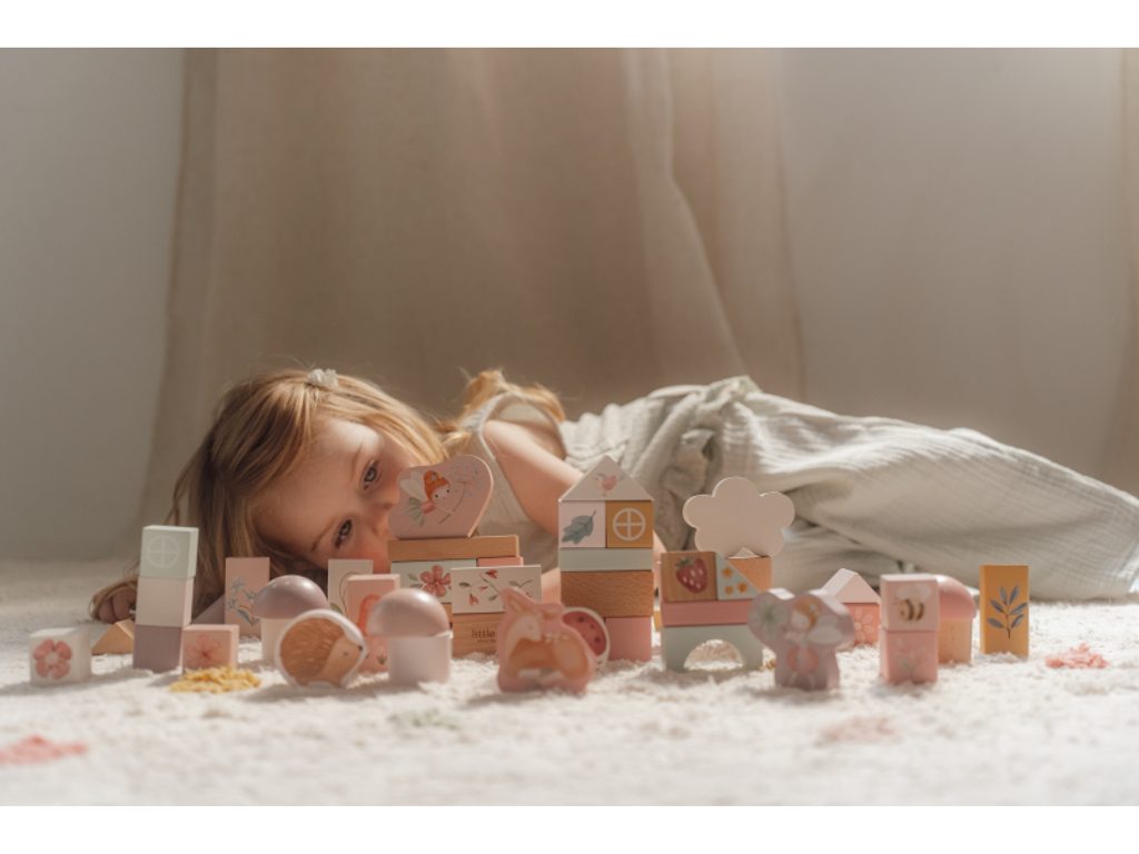 Dřevěné kostky jsou nezbytnou součástí každého dětského pokoje. Tato tuba obsahuje 50 kostek v různých barvách a tvarech, zdobených krásnými motivy ze života na zahradě. Podpořte dětskou kreativitu a společně stavte originální konstrukce. Po skončení hry jednoduše kostky uložíte zpět do praktické tuby! Hračka je součástí designové kolekce Little Dutch Fairy Garden, inspirované kouzlem života na zahradě.