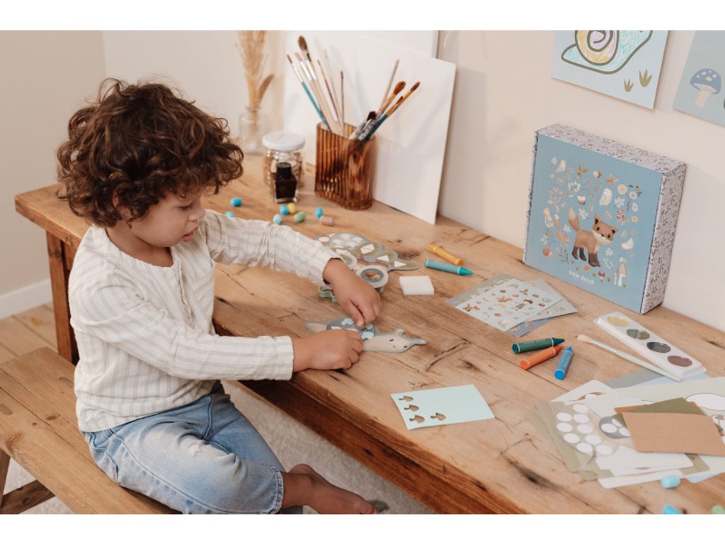Tato extra velká kreativní sada obsahuje vše, co děti potřebují pro rozmanité výtvarné tvoření – pastelky, vodovky, samolepky, modelínu a další výtvarné pomůcky. Vše je přehledně zabaleno v krásném boxu, do kterého lze vše snadno uklidit po skončení tvoření. Kreativní sada nejen zabaví, ale také podporuje rozvoj jemné motoriky a stimuluje kreativní myšlení dětí. Sada je součástí designové kolekce hraček a doplňků Little Dutch Forest Friends, inspirované kouzlem lesního světa.
