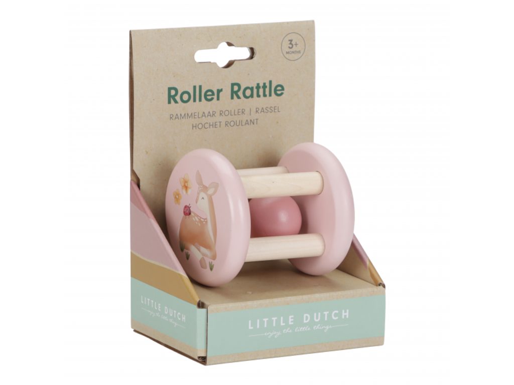 Roztomilé dřevěné chrastítko s cinkající kuličkou v kleci dokonale padne do každé dětské ručičky. Hračka podporuje koordinaci rukou a očí. Chrastítko je součástí designové kolekce hraček a doplňků Little Dutch Fairy Garden inspirované životem na zahradě.