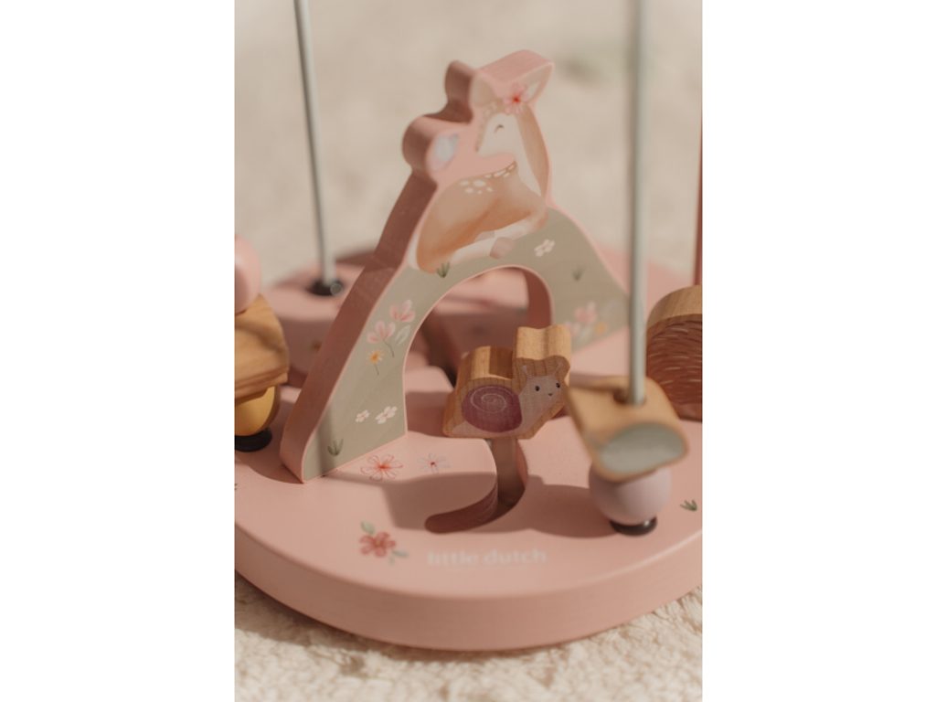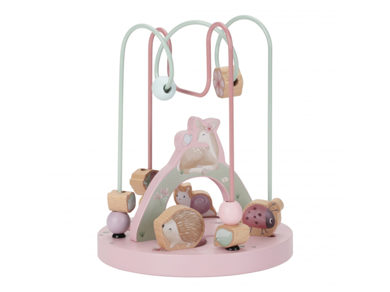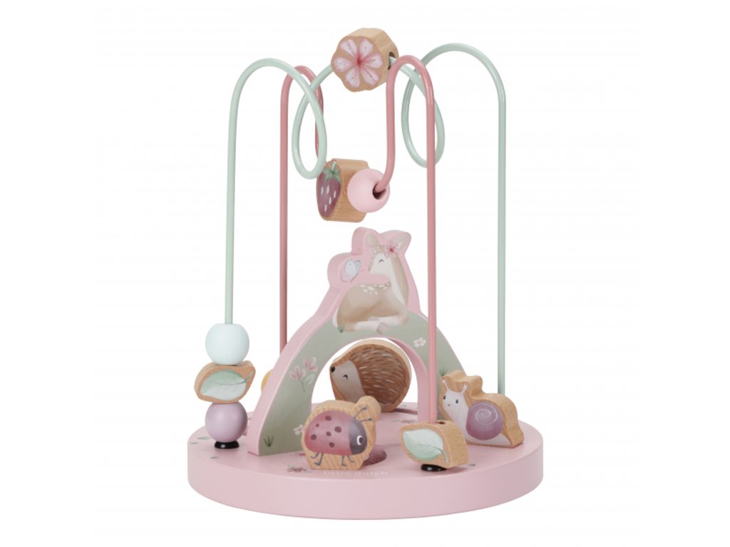 Dřevěný motorický labyrint je ideální pro rozvoj koordinace ruka / oko dítěte. Kromě pohyblivých korálků jsou součástí labyrintu i posuvná srnka, ježek, beruška a šnek. Labyrint je součástí designové kolekce hraček a doplňků Little Dutch Fairy Garden inspirované životem na zahradě.