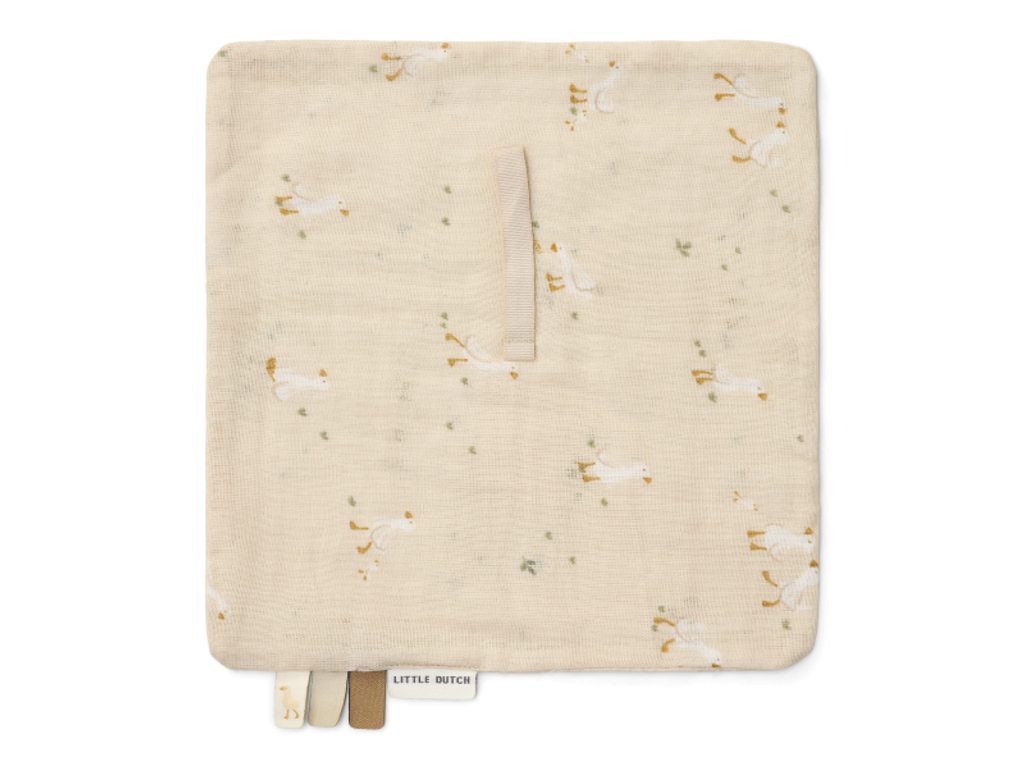 Zklidněte a potěšte své miminko s tímto měkoučkým muchláčkem s jemným motivem hus z kolekce Little Dutch Husa. Muchláček vyrobený z organického bavlněného mušelínu nabízí ideální kombinaci pohodlí, hebkosti a roztomilého designu. Extra jemný materiál - 100% organický bavlněný mušelín, který je hebký, savý a prodyšný Bezpečné pro miminka - certifikace OEKO-TEX® Standard 100 zaručuje, že je látka šetrná k pokožce i zdraví miminka Praktické poutko umožňuje připevnit šidítko, aby se neztratilo ani neušpinilo (šidítko není součástí výrobku) Složení: 100 % organická bavlna Rozměry: 20 × 20 cm Možno prát v pračce.