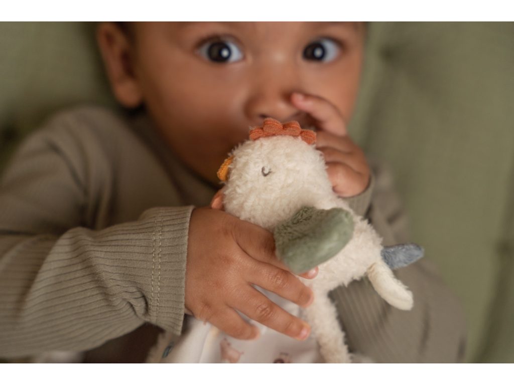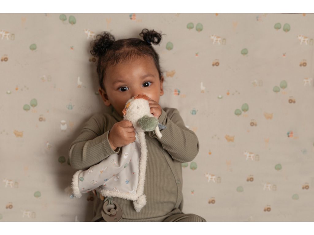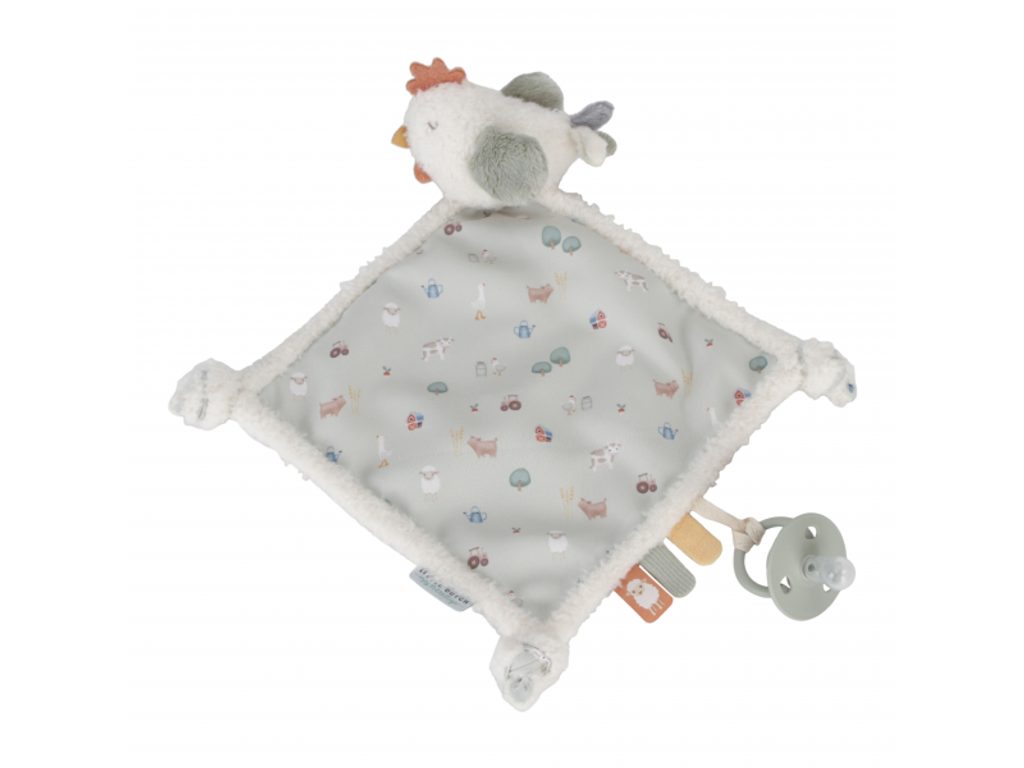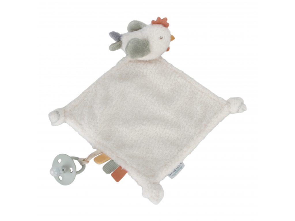 Plyšový muchláček s roztomilou slepičkou a úchytem pro šidítko láká ke hraní i mazlení. Muchláček je je vyroben z velmi jemného a příjemného materiálu a je ideální jako společník do postýlky pro klidné usínání. Hračka je součástí designové kolekce hraček Little Dutch Farma. Rozměry: 34 x 30 cm Vhodné pro děti od narození.