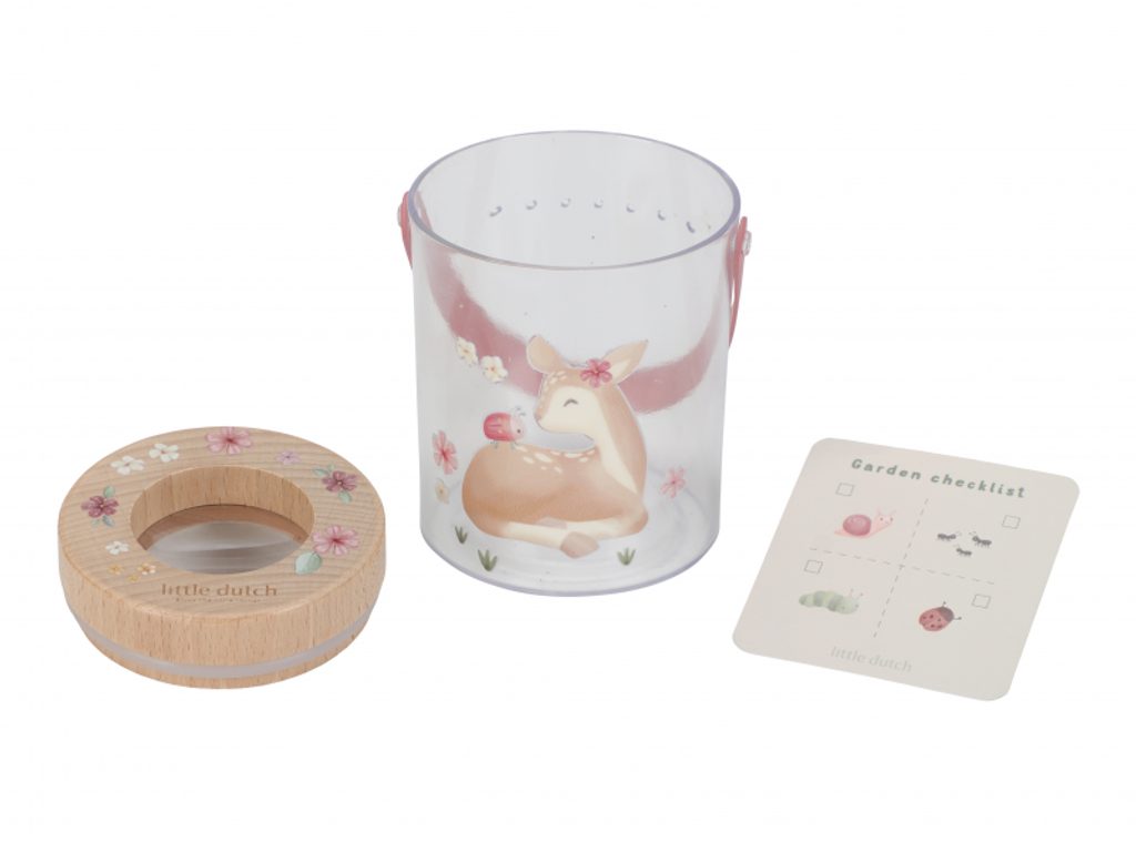 Tato nádoba na hmyz s krásným potiskem je ideální pro bezpečné pozorování hmyzu, který žije v zahradách nebo lesích. Průhledná plastová nádoba má dřevěné víčko s lupou, která umožňuje detailní zkoumání. Větrací otvory zajišťují dostatečnou cirkulaci vzduchu, aby hmyz mohl dýchat. Díky praktickému držadlu je snadné nádobu přenášet. Součástí je také kartička s obrázky malých živočichů, které jsou ideální pro pozorování. Tato nádoba je součástí kolekce Little Dutch Forest Friends, inspirované přírodním životem v lese.
