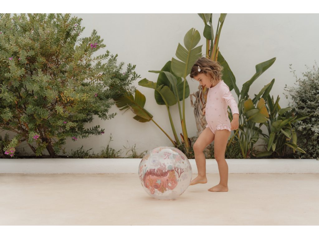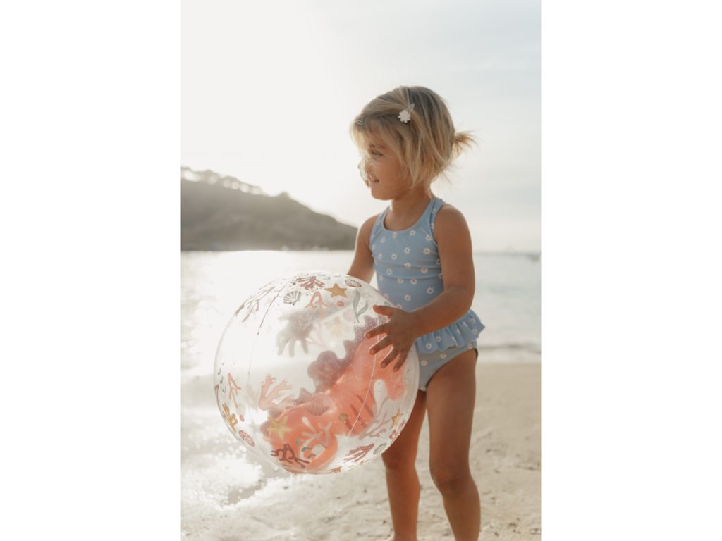 Nafukovací míč v originálním provedení s nafukovacím mořským koníkem uvnitř míče a s krásným potiskem motivů ze života pod mořskou hladinou využijí vaše děti pro hraní na zahradě i na pláži u moře. Míč je součástí designové kolekce Little Dutch Ocean Dreams. Průměr míče: 35 cm Vhodné pro děti od 2 let.