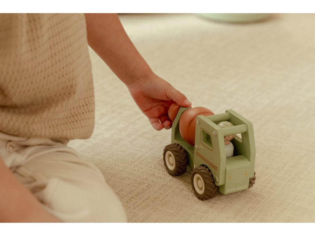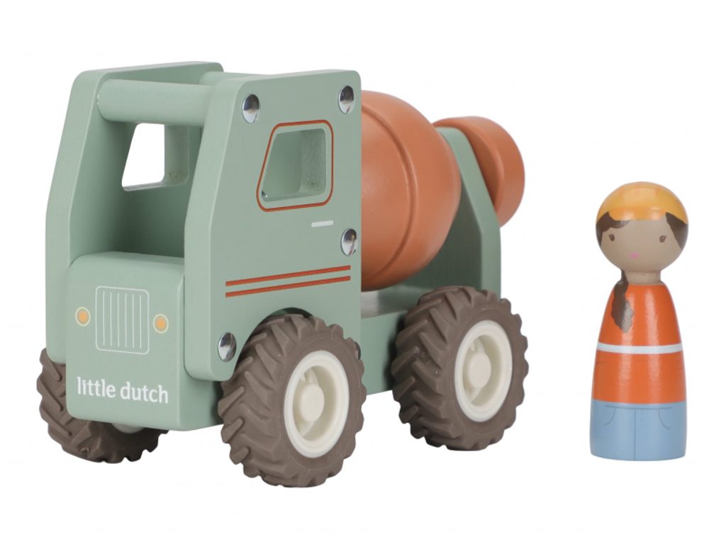 Míchat a stavět! Tento dřevěný míchač betonu je připraven na práci na stavbě. Při jízdě se buben míchačky otáčí, takže hra vypadá jako skutečná. Robustní náklaďák s gumovými pneumatikami zajišťuje hladkou a tichou jízdu. Součástí hračky je dřevěná figurka stavbyvedoucího, která dodá hře ještě více zábavy a realismu. Míchačku můžete kombinovat s dalšími stavebními vozidly – například s nakladačem, autojeřábem nebo sklápěčkou – pro kompletní stavební dobrodružství. Vyrobeno z odolného FSC certifikovaného dřeva. Vhodné pro děti od 18 měsíců.