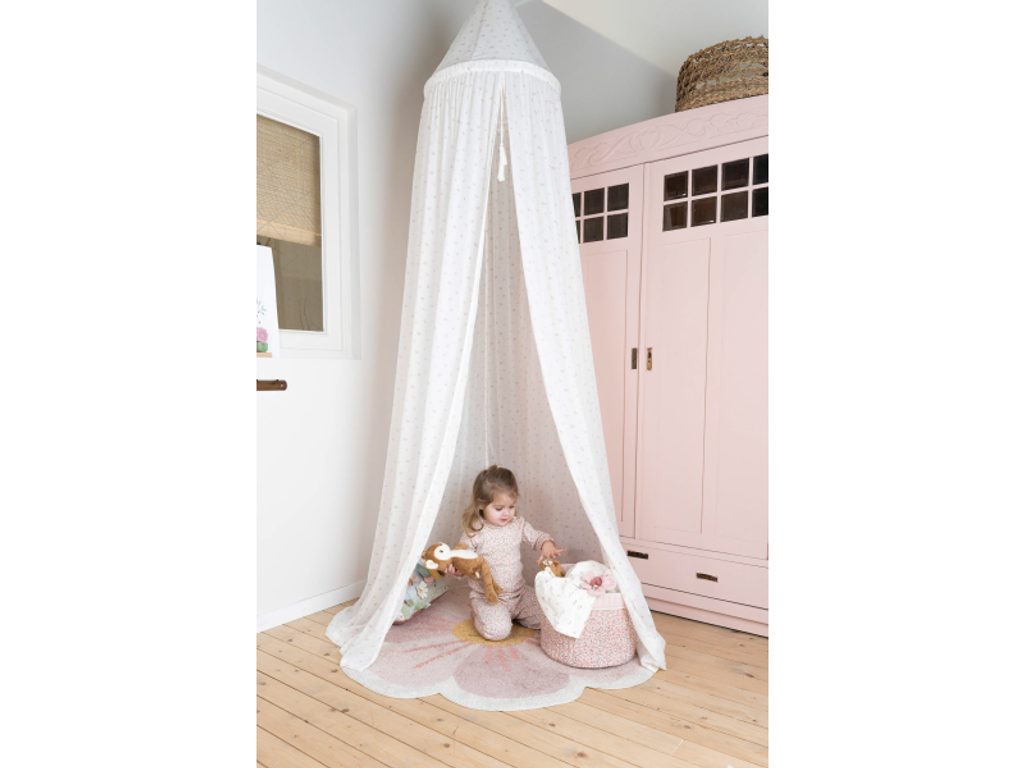 Krásná nebesa nad postýlku vytvoří pro vaše dítě útulné místo nejen pro spánek, ale i pro hraní. Můžete je zavěsit nad postýlku nebo košík pro miminko a později, jak dítě roste, proměnit v kouzelný hrací stan – stačí je zavěsit nad měkkou hrací podložku či kobereček. Tato nebesa tak vytvoří nejen nádhernou dekoraci dětského pokoje, ale i útulný koutek pro hraní a snění. Lehká látka nebes je připevněna na obruči, kterou snadno upevníte ke stropu pomocí přiloženého úchytu. Nebesa jsou součástí designové kolekce Little Dutch Fairy Garden, inspirované životem na zahradě.