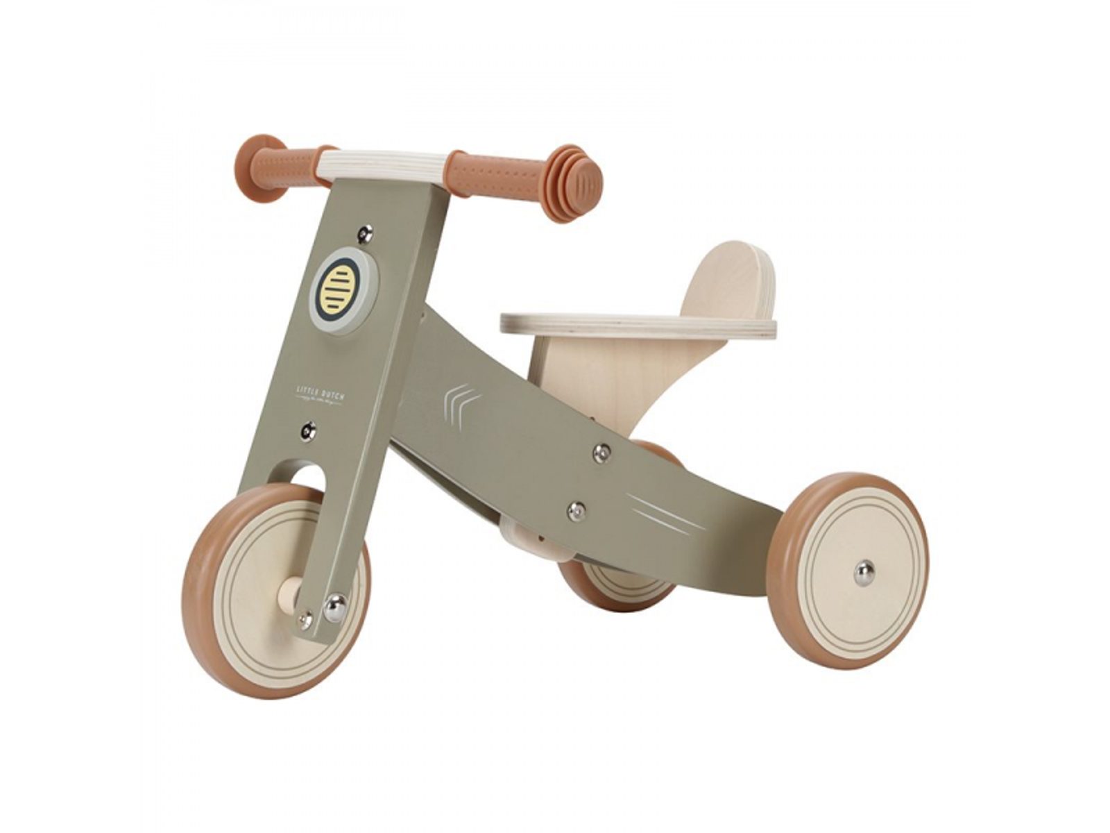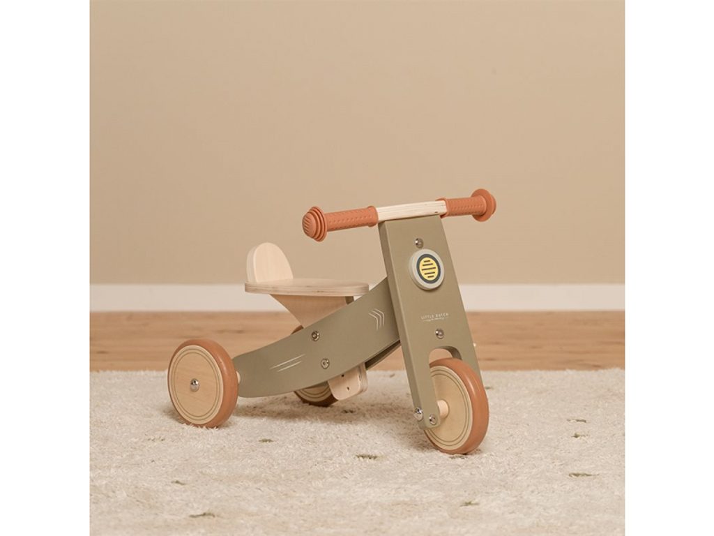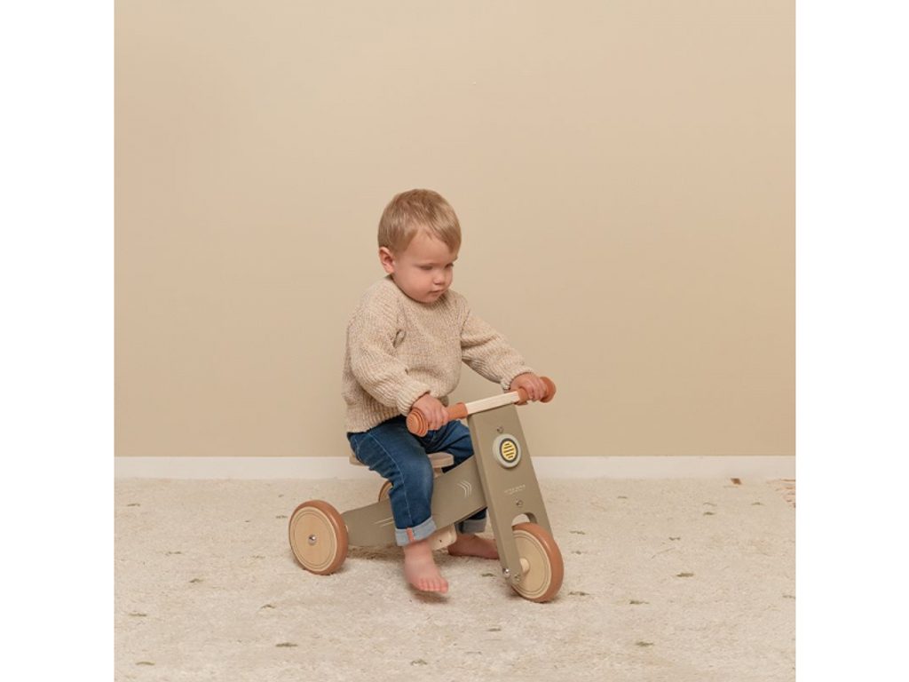 Dětské odrážedlo v krásném dřevěném provedení se třemi koly pro větší stabilitu. Kola mají pryžovou hranu pro hladkou jízdu, pryžové rukojeti řídítek poskytují příjemné držení a ovládání odrážedla. Robustní sedadlo umožňuje pohodlné a stabilní sezení. Jízda na odrážedle stimuluje rozvoj smyslu pro rovnováhu dítěte a rozvíjí jeho hrubou motoriku. Rozměry: 56,5 x 35,6 x 35,8 Vhodné pro děti od 12 měsíců.