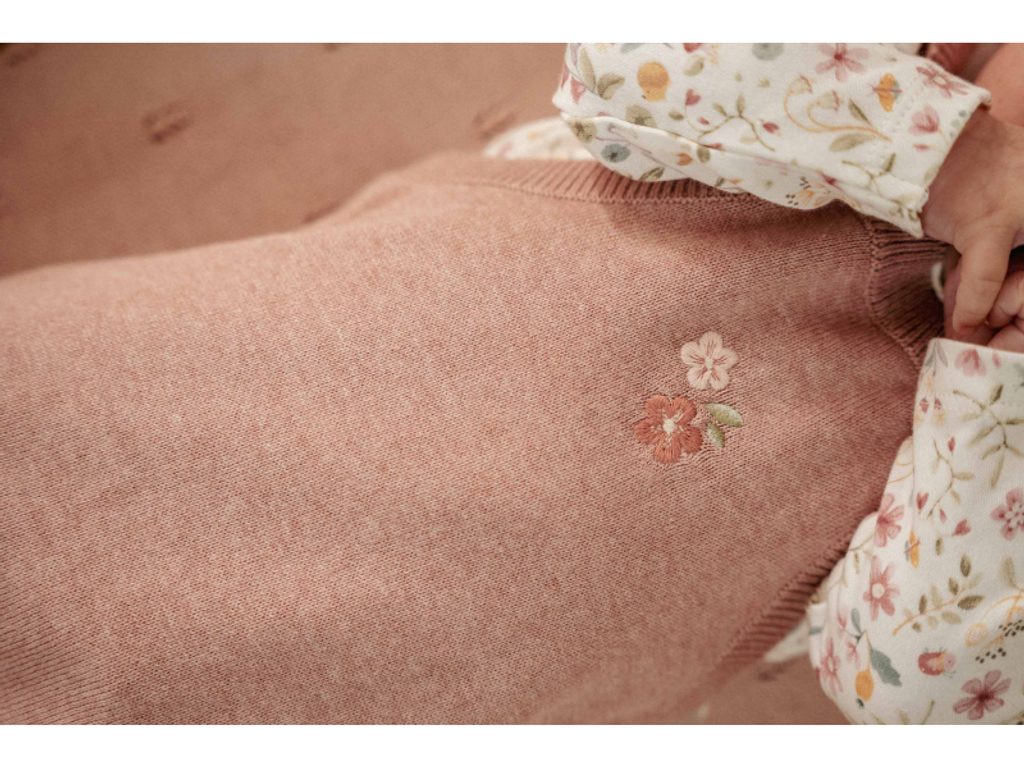 Pohodlný overal z měkké pleteniny z organické bavlny je ideální volbou pro každodenní nošení i slavnostní příležitosti. Jemná květinová výšivka dodává oblečku něžný vzhled, zatímco praktické zapínání na knoflíčky usnadňuje oblékání. Skvěle se hodí ke kombinaci s tričkem, body nebo kardiganem.