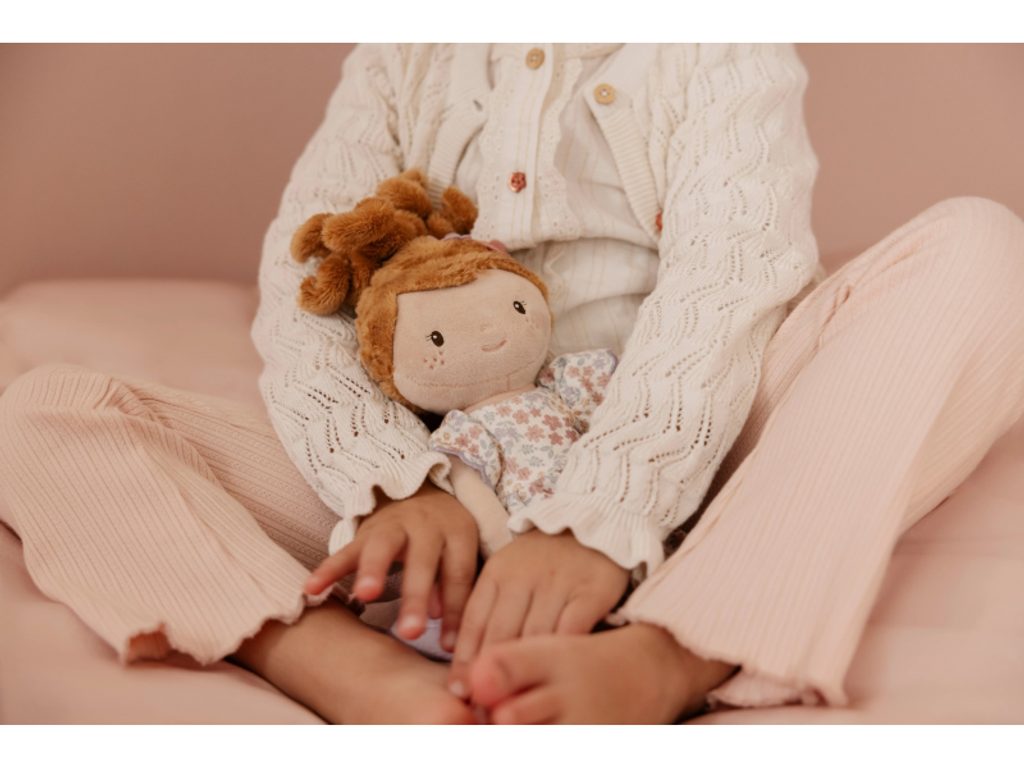 Poznejte půvabnou plyšovou panenku Avu v květovaných šatičkách – věrnou kamarádku na každý den! Ava miluje hry na maminku, mazlení a vyprávění příběhů před spaním. Panenka je ušitá z měkkého jemného materiálu s výplní ze 100% recyklovaného polyesteru s certifikací GRS (Global Recycled Standard) – udržitelná volba pro vaše dítě. Ideální na rozvoj empatie, představivosti a jemné motoriky.