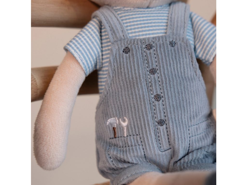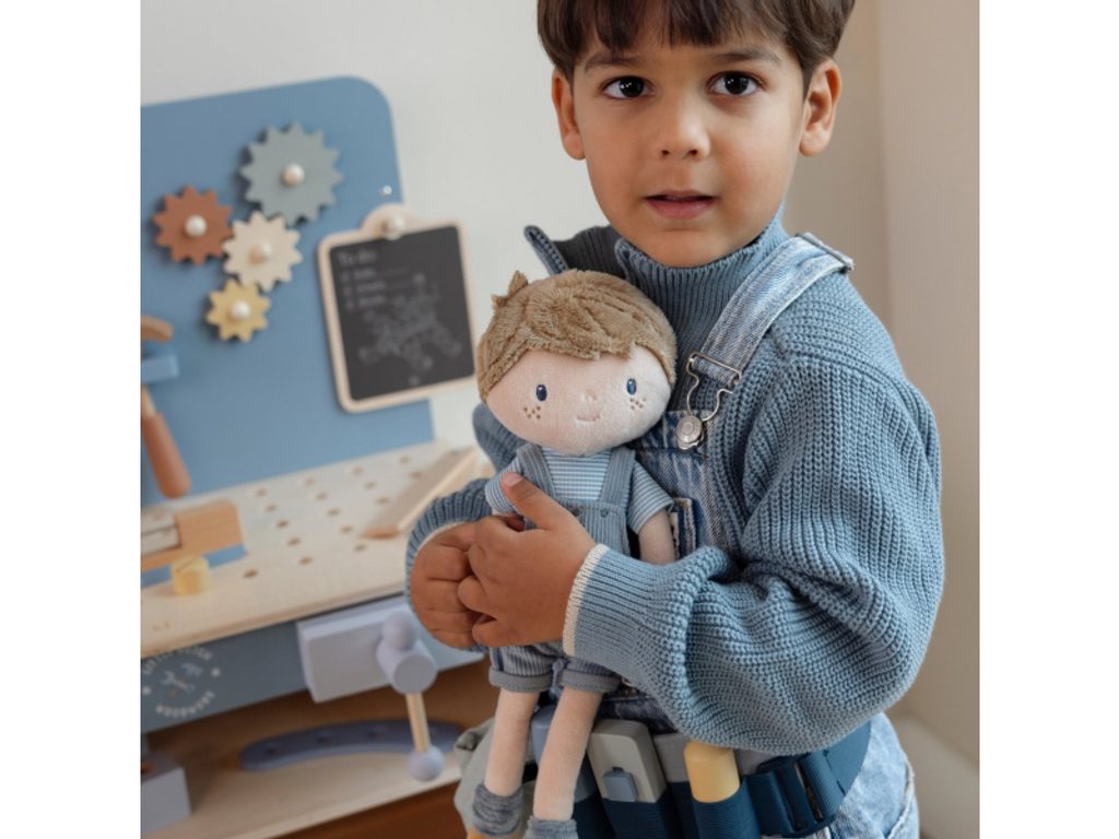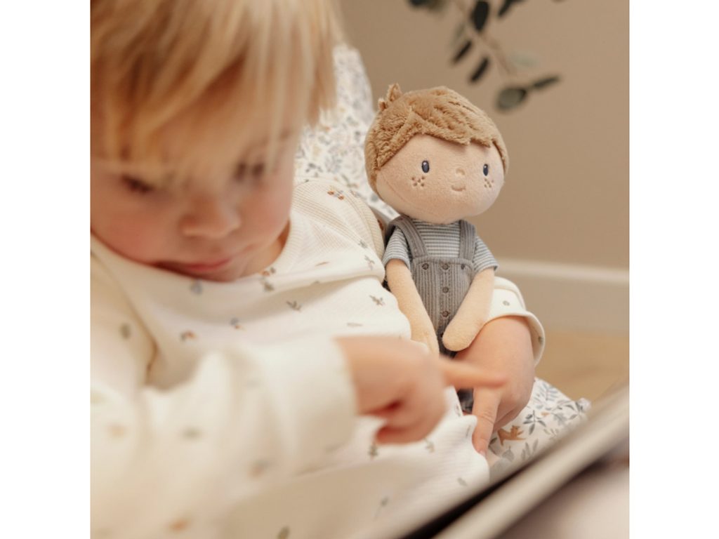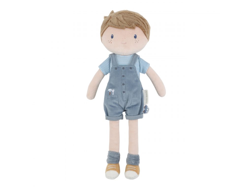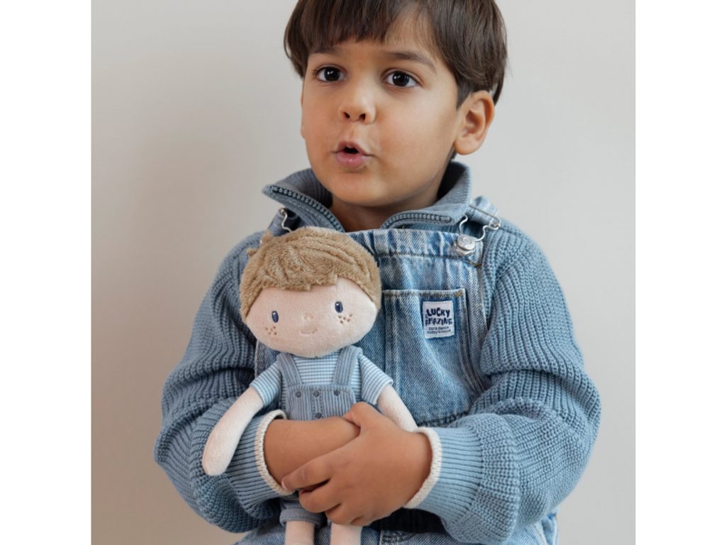Seznamte se s chlapečkem Jimem – originální plyšovou panenkou v manšestrových kalhotách s laclem! Jim je perfektní kamarád pro všechna dobrodružství a hry, ideální jako první panenka pro chlapce i holčičky. Panenka je vyrobena z měkkého jemného materiálu s výplní ze 100% recyklovaného polyesteru s certifikací GRS – šetrná volba k přírodě. Jim je skvělý na rozvoj empatie, mazlení a usínání.