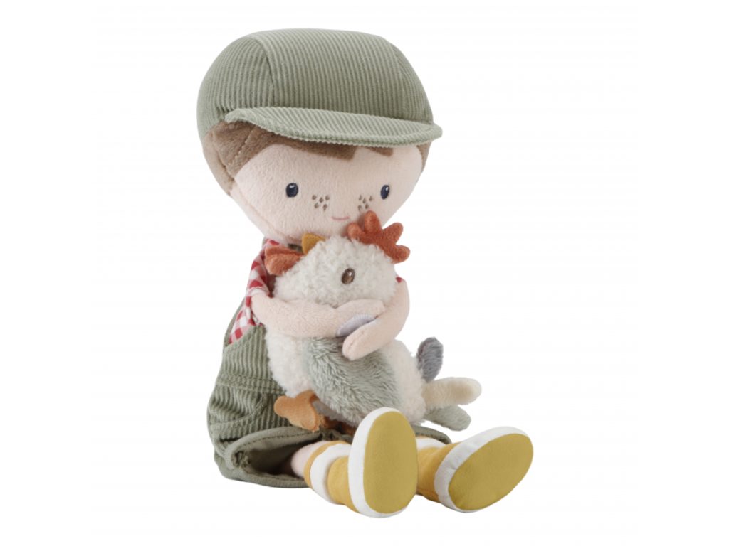 Originální plyšová panenka v podobě farmáře Jima v manšestrových kalhotách s laclem a se slepičkou v ruce. Panenka z měkkého jemného materiálu je ideální jako první panenka pro vaše dítě, je vhodná na hraní i mazlení a bude se s ní i krásně usínat! Panenka je dodávána v krásné dárkové krabičce. Rozměry: 35 x 12 x 10,5 cm Vhodné pro děti od 12 měsíců.