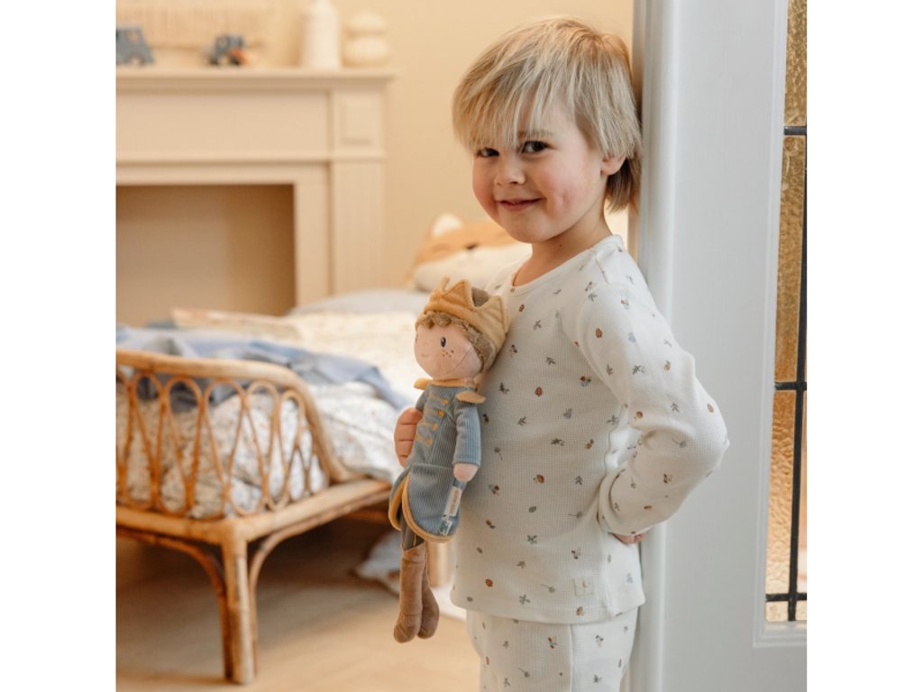 Vítejte v pohádkovém království! Princ Jim je plyšová panenka v krásném obleku s korunkou, připravená na královská dobrodružství a zachraňování princezen. Perfektní pro fantazijní hry a vyprávění pohádek. Panenka je ušitá z měkkého jemného materiálu s výplní ze 100% recyklovaného polyesteru s certifikací GRS (Global Recycled Standard). Ideální na rozvoj představivosti, empatie a kreativní hry.
