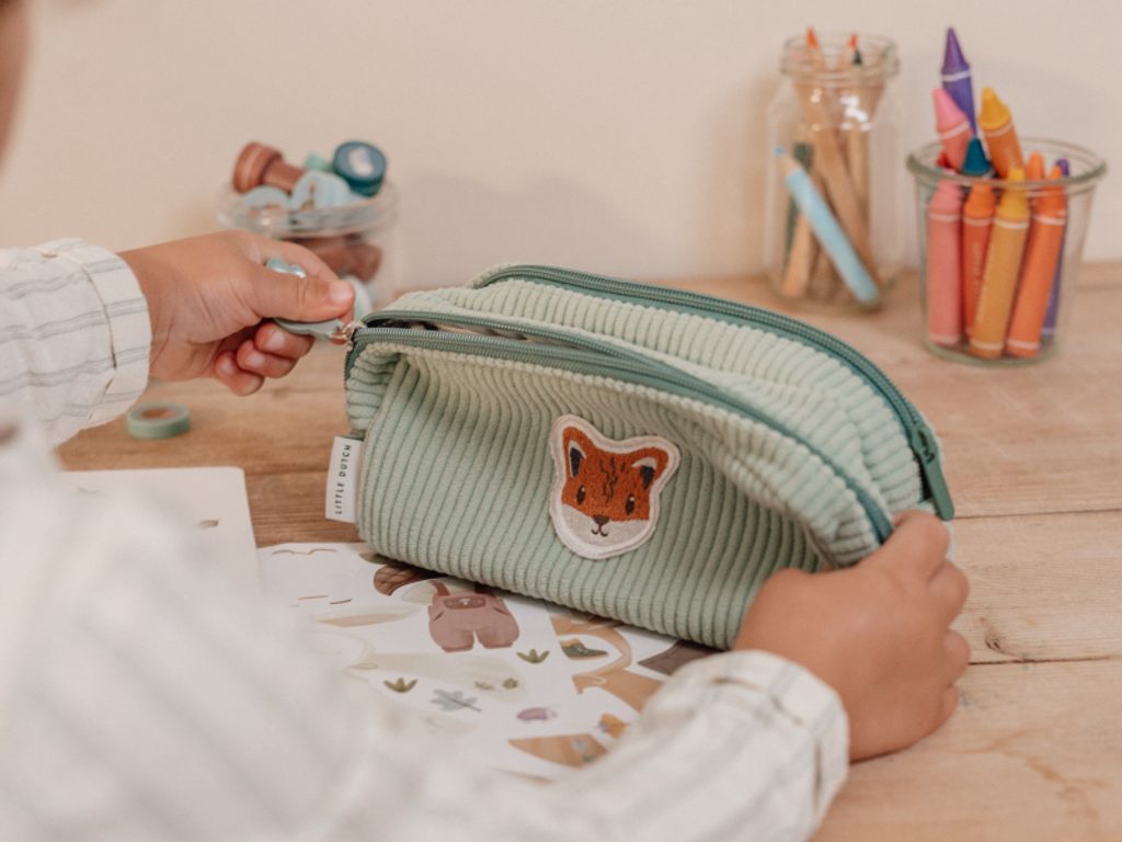 Pouzdro na psací a výtvarné potřeby v krásném provedení s aplikací lišky má dvě části uzavíratelné na zip pro přehledné uložení výtvarných potřeb vašeho malého umělce. Penál jje součástí designové kolekce hraček a doplňků Little Dutch Forest Friends inspirované životem v lese.