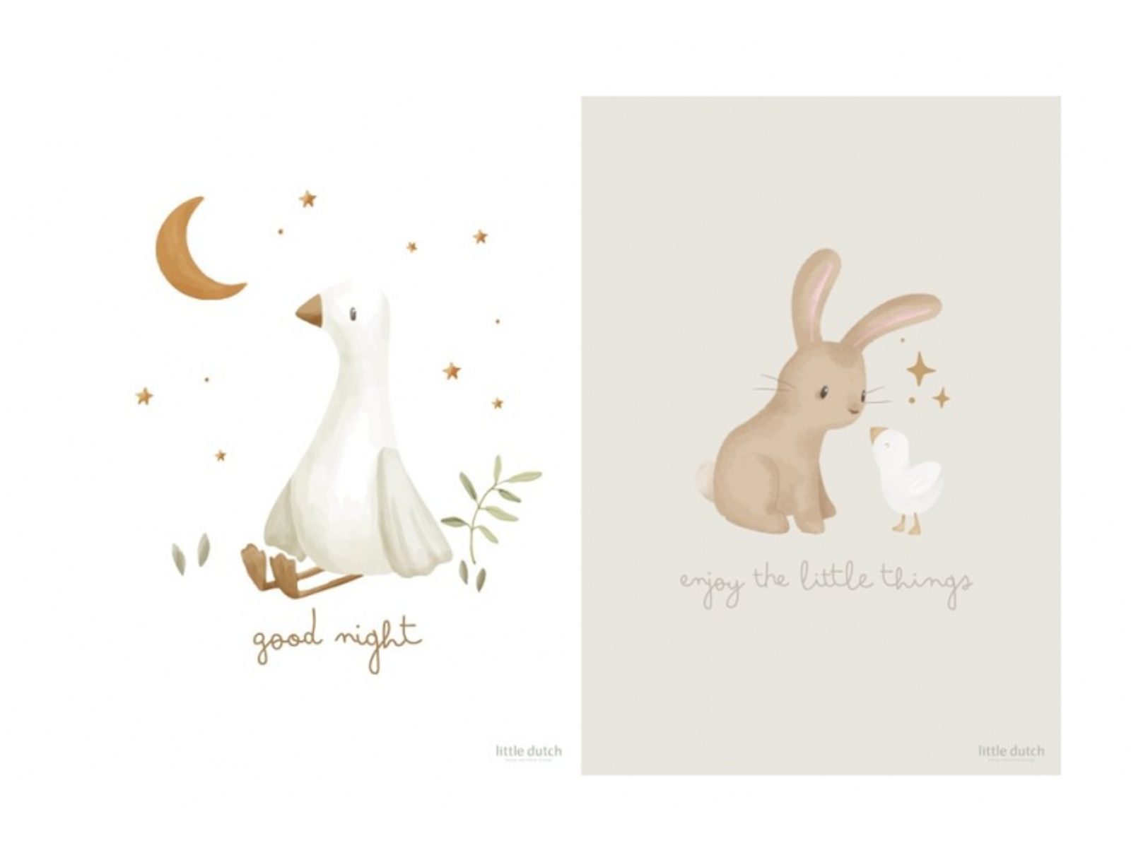 Oboustranný plakát s krásnými ilustracemi se stane originální dekorací dětského pokoje. Oboustranné provedení umožňuje snadnou výměnu obrázku pouhým otočením. Plakát je vyroben z kvalitního silného papíru. Plakát je součástí designové kolekce hraček, textilu a doplňků Little Dutch Newborn Naturals. Pro snadné zavěšení plakát zkombinujte se samostatně prodávaným Little Dutch dřevěným věšákem na plakáty A3. Rozměry: 42 x 32 cm