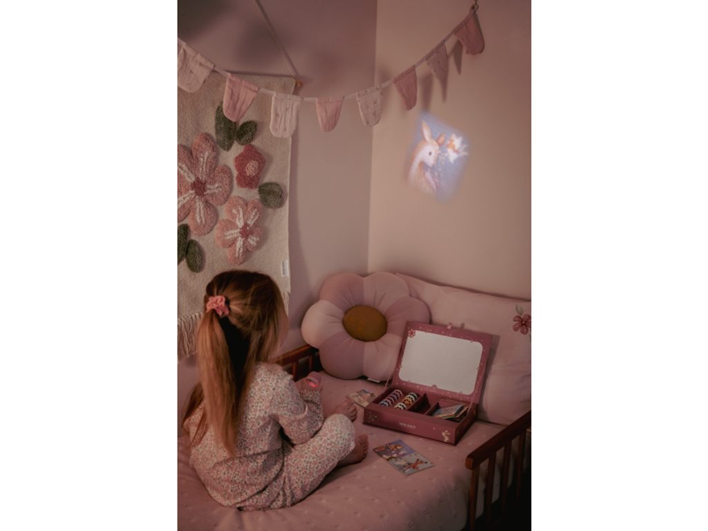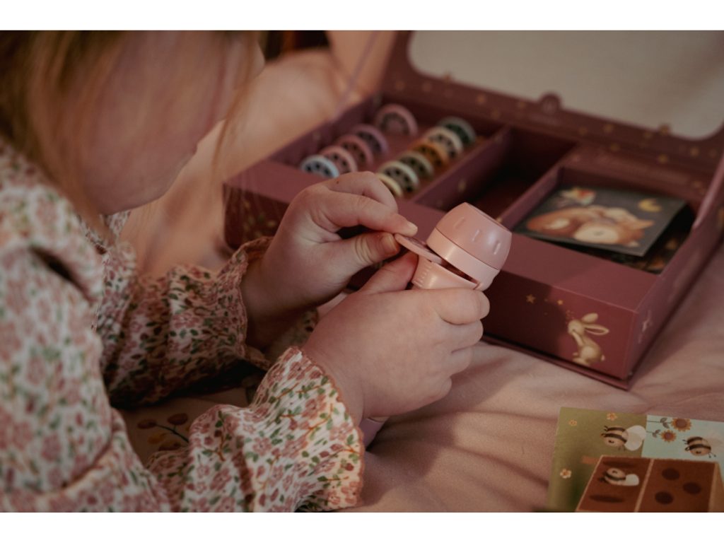 Projektor má pevnou dřevěnou rukojeť a funguje na baterie, takže si jej děti mohou vzít kamkoliv s sebou a užívat si pohádky na cestách. Po skončení příběhu lze baterku a veškeré příslušenství snadno uložit do krásného úložného boxu, což usnadní údržbu a udržení pořádku.