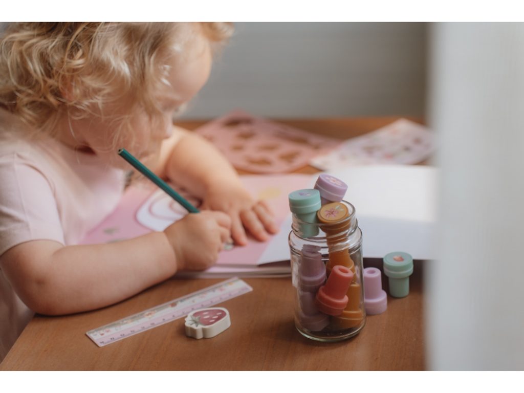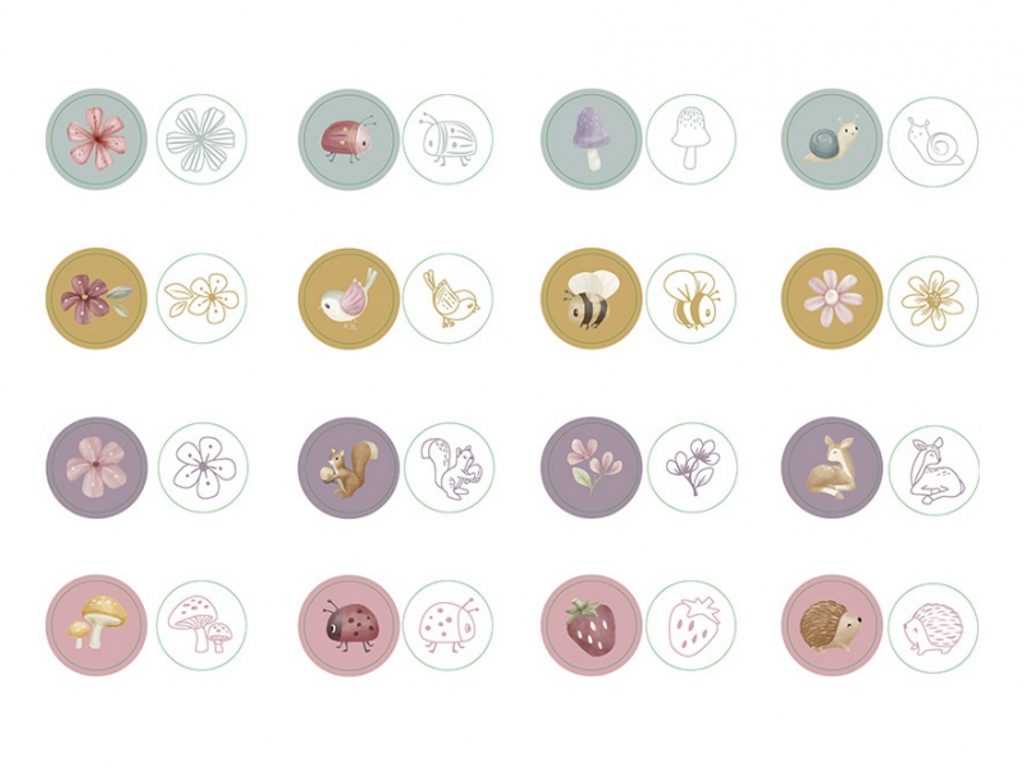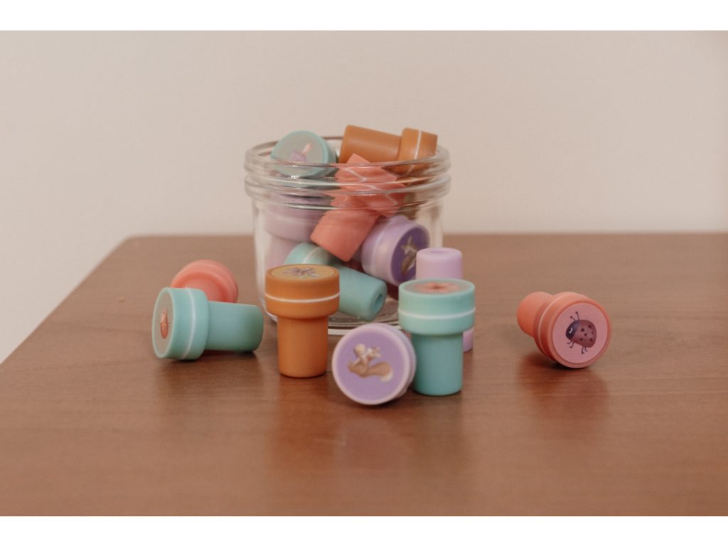 Sada samobarvicích razítek s roztomilými motivy ze života na zahradě včetně srnky, berušky, veverky apod. Razítka jsou samobarvicí, takže jsou ihned připravená k použití! Razítka představují snadný a zábavný způsob, jak stimulovat dětskou kreativitu a zároveň rozvíjet jejich jemné motorické dovednosti. Razítka jsou součástí designové kolekce hraček a doplňků Little Dutch fairy Garden inspirované životem na zahradě. Sada obsahuje 16 razítek. Rozměry balení: 15,5 x 13 x 3,8 cm Vhodné pro děti od 3 let.