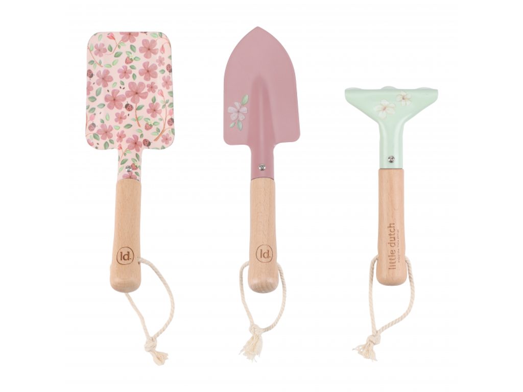 Každý malý zahradník či zahradnice si zaslouží vlastní nářadí pro zahradničení! Tato sada obsahuje dvě lopatky a hrabičky vyrobené z odolného kovu s dřevěnou rukojetí, které zajistí pohodlné uchopení. Nářadí je krásně zdobeno potiskem a praktická poutka umožňují snadné zavěšení po dokončení práce, takže bude vždy připravené pro další použití. Sada je součástí designové kolekce Little Dutch Fairy Garden, inspirované kouzlem zahradničení.