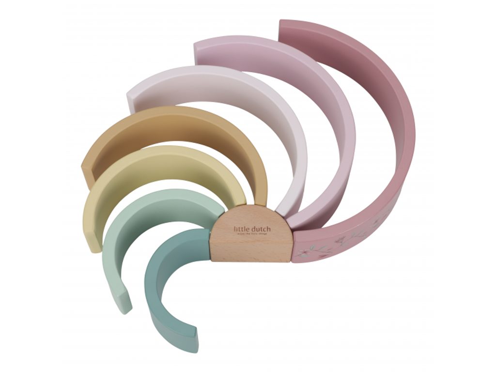 Přeneste duhu z oblohy přímo do dětského pokoje! Tato krásná dřevěná skládačka ve tvaru duhy dává dětem příležitost využít svou představivost a vytvářet různé tvary. Díky ní mohou postavit například železniční tunel, domeček pro malé panenky nebo most pro auta. Možnosti jsou skutečně nekonečné!