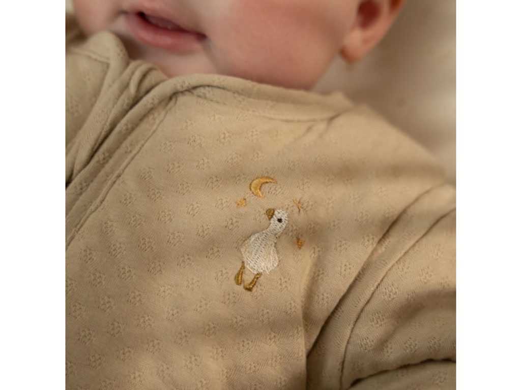 Praktický spací pytel s oddělitelnými rukávy nabízí variabilitu při použití dle počasí a teploty v místnosti. Díky jemné výplni je vhodný pro použití místo peřinky. Spací pytel zajistí, že se dítě v noci neodkope a bude tak po celou dobu spánku v pohodlí a teple bez rizika prochladnutí. Kryté zipy v průramcích umožňují snadné oddělení rukávů, pokud chcete spací pytel používat v teplejším prostředí bez rukávů. Zip na přední straně umožňuje snadné vložení dítěte do spacího pytle i přebalování během spaní. Spací pytel je testován na TOG hodnotu, která určuje hřejivost spacích pytlů a dek. Čím vyšší je hodnota TOG, tím je produkt teplejší. Spací pytel má hodnotu TOG 2, jedná se tedy o spací pytel vhodný pro celoroční použití. Spací pytel je součástí designové kolekce textilních doplňků Little Dutch Newborn Naturals. Složení: 100% bavlna, výplň 100% polyester Vhodné pro děti od 60 do 76 cm (cca od 3 do 9 měsíců).