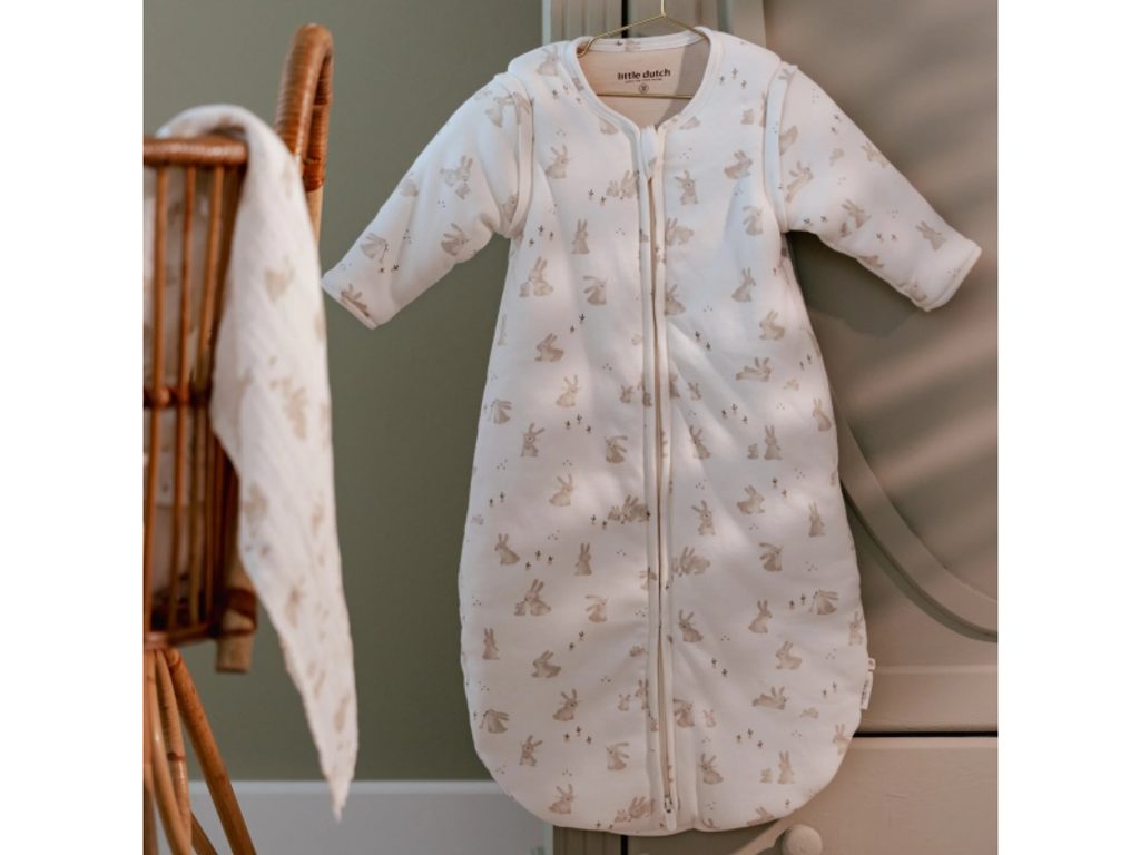 Praktický spací pytel s oddělitelnými rukávy nabízí variabilitu při použití dle počasí a teploty v místnosti. Díky jemné výplni je vhodný pro použití místo peřinky. Spací pytel zajistí, že se dítě v noci neodkope a bude tak po celou dobu spánku v pohodlí a teple bez rizika prochladnutí. Kryté zipy v průramcích umožňují snadné oddělení rukávů, pokud chcete spací pytel používat v teplejším prostředí bez rukávů. Zip na přední straně umožňuje snadné vložení dítěte do spacího pytle i přebalování během spaní. Spací pytel je testován na TOG hodnotu, která určuje hřejivost spacích pytlů a dek. Čím vyšší je hodnota TOG, tím je produkt teplejší. Spací pytel má hodnotu TOG 2, jedná se tedy o spací pytel vhodný pro celoroční použití. Spací pytel je součástí designové kolekce textilních doplňků Little Dutch Baby Bunny. Složení: 100% bavlna, výplň 100% polyester Vhodné pro děti od 76 do 98 cm (cca od 6 do 18 měsíců).