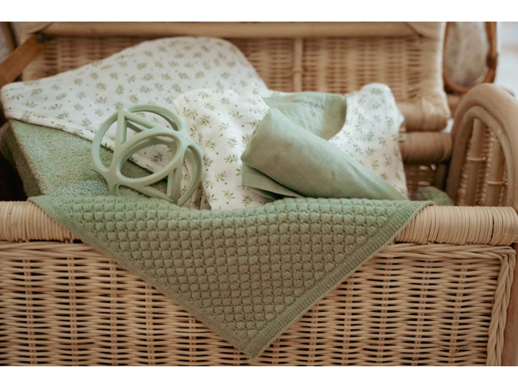 Praktická žínka do sprchy z jemné, 100% organické froté bavlny vám umožní bezpečnější držení miminka během sprchování. Po namočení se měkký froté materiál přilepí na vaši paži a dítě vám tak nebude na ruce klouzat. Žínka je součástí designové kolekce textilních doplňků Little Dutch Blueberry Leaves.