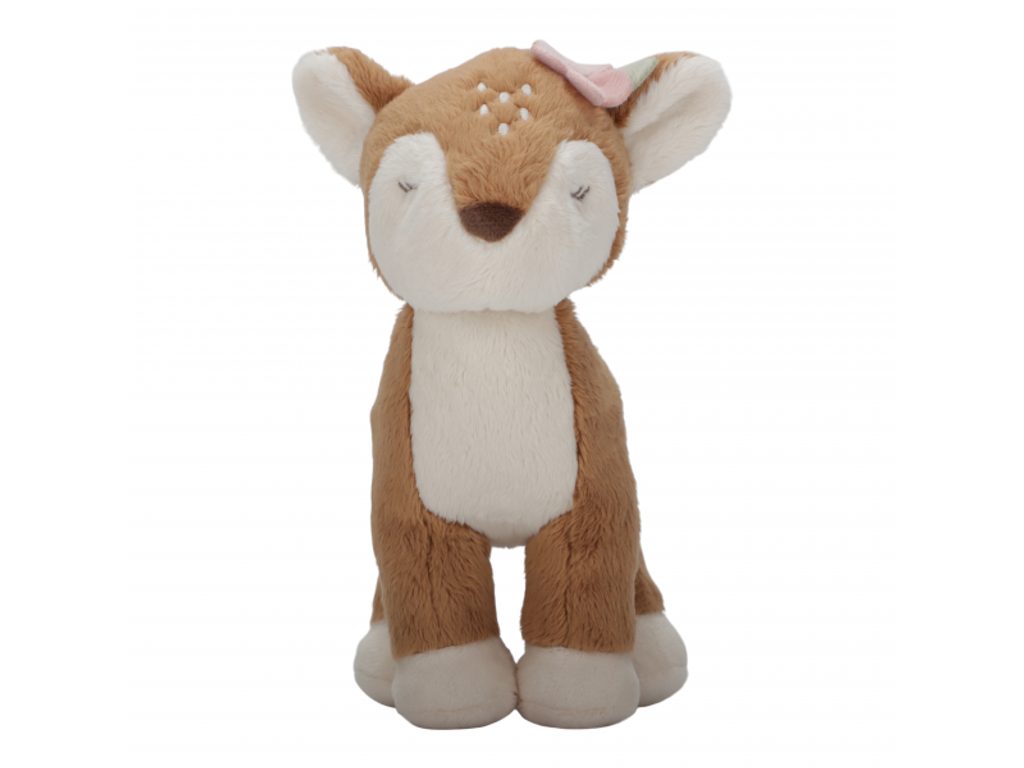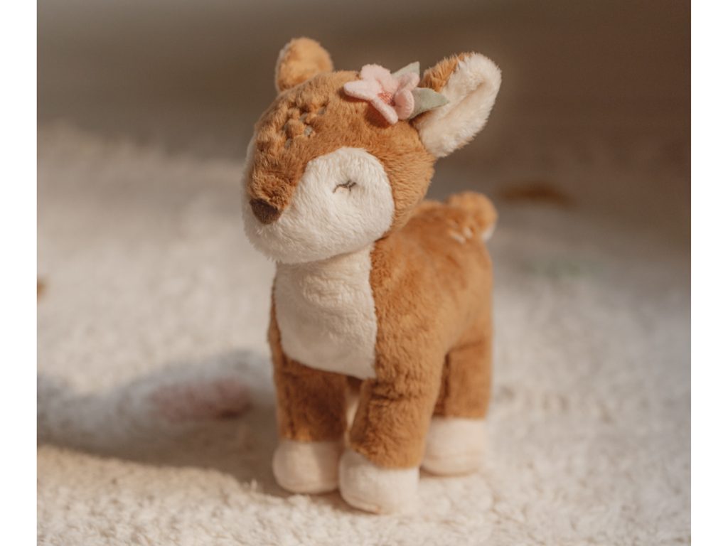Jemná plyšová hračka v podobě něžné srnky je ideální jako mazlík do postýlky pro lepší usínání vašeho dítěte. Srnka umí samostatně stát a může tak sloužit i jako krásná dekorace v dětském pokojit. Hračka je součástí designové kolekce hraček a doplňků Little Dutch Fairy Garden inspirované životem na zahradě.