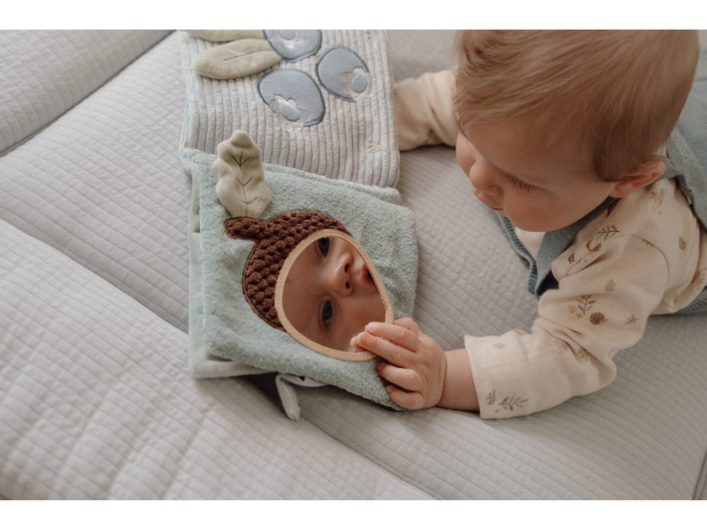 Měkká textilní knížka s krásnými motivy ze života v lese upoutá pozornost vašeho dítěte množstvím aktivit, ukrytých na jednotlivých stránkách. Ke zkoumání a prohlížení lákají šusticí i pískací stránky, různorodé textury nebo např. bezpečné zrcátko. Knížka pomáhá rozvíjet jednotlivé smysly dítěte i koordinaci ruka / oko. Knížka je součástí designové kolekce hraček a doplňků Little Dutch Forest Friends inspirované životem v lese.