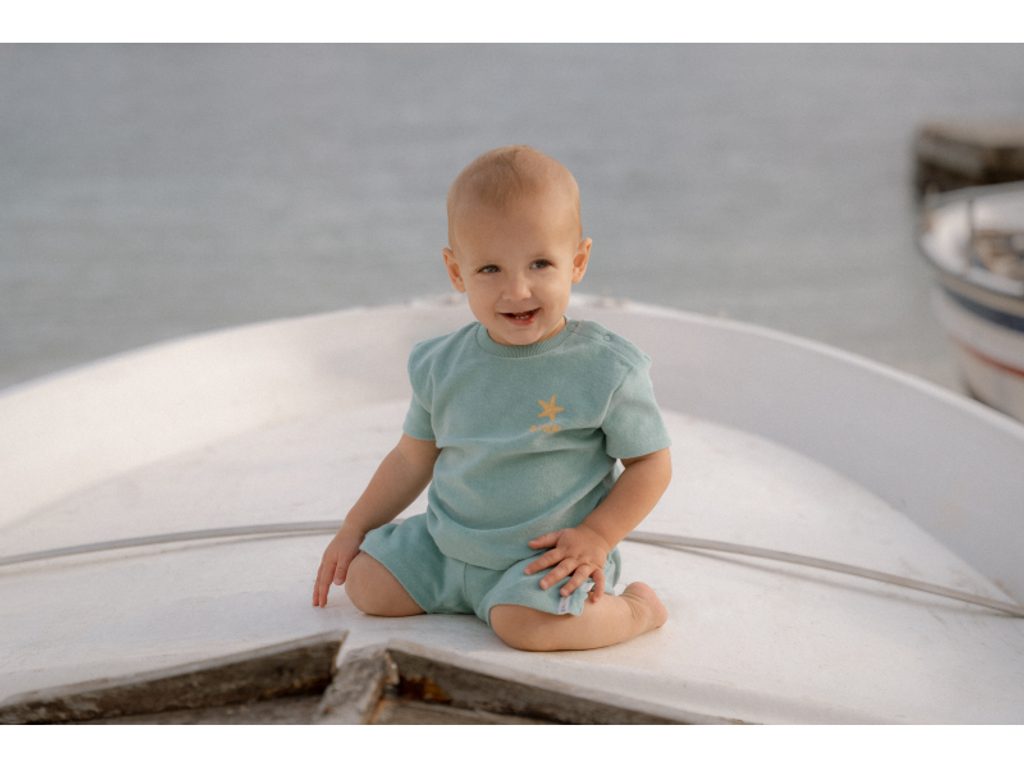 Stylový a pohodlný komplet z měkkého bavlněného froté je ideální volbou pro teplé letní dny. Ať už se chystáte na pláž, na zahradu nebo na rodinný výlet, tento set zajistí vašemu dítěti pohodlí i volnost pohybu.