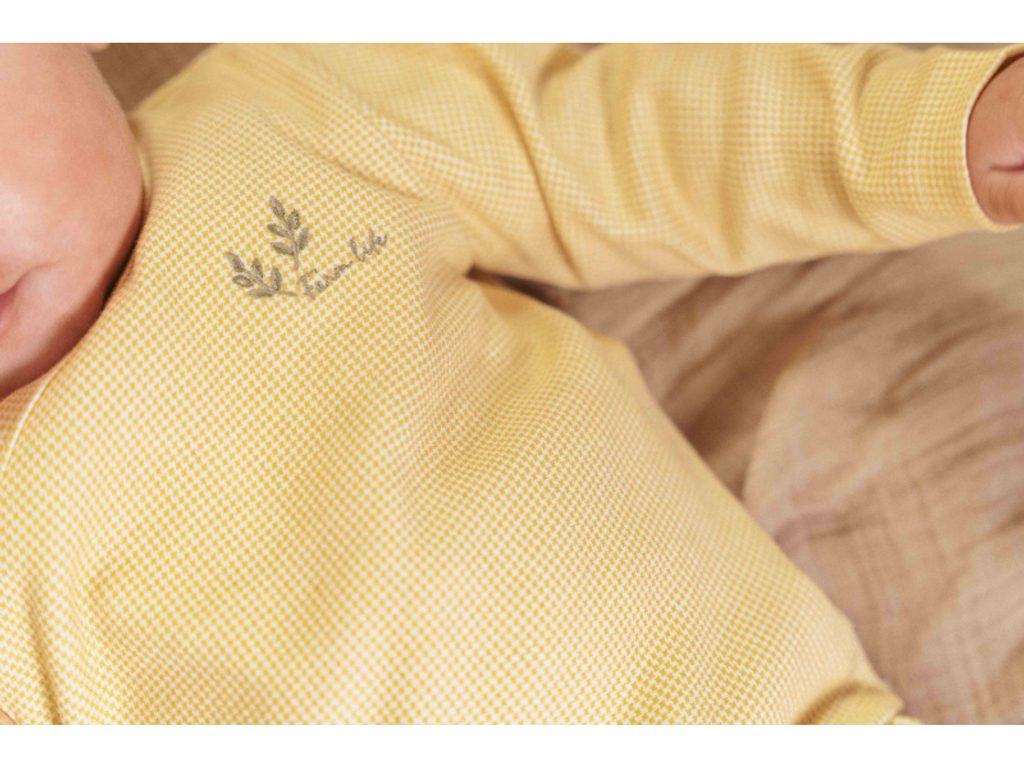 Triko z měkké organické bavlny s jemným vzorem a krásnou výšivkou má zapínání na knoflíky na přední straně pro snadné oblékání dítěte.