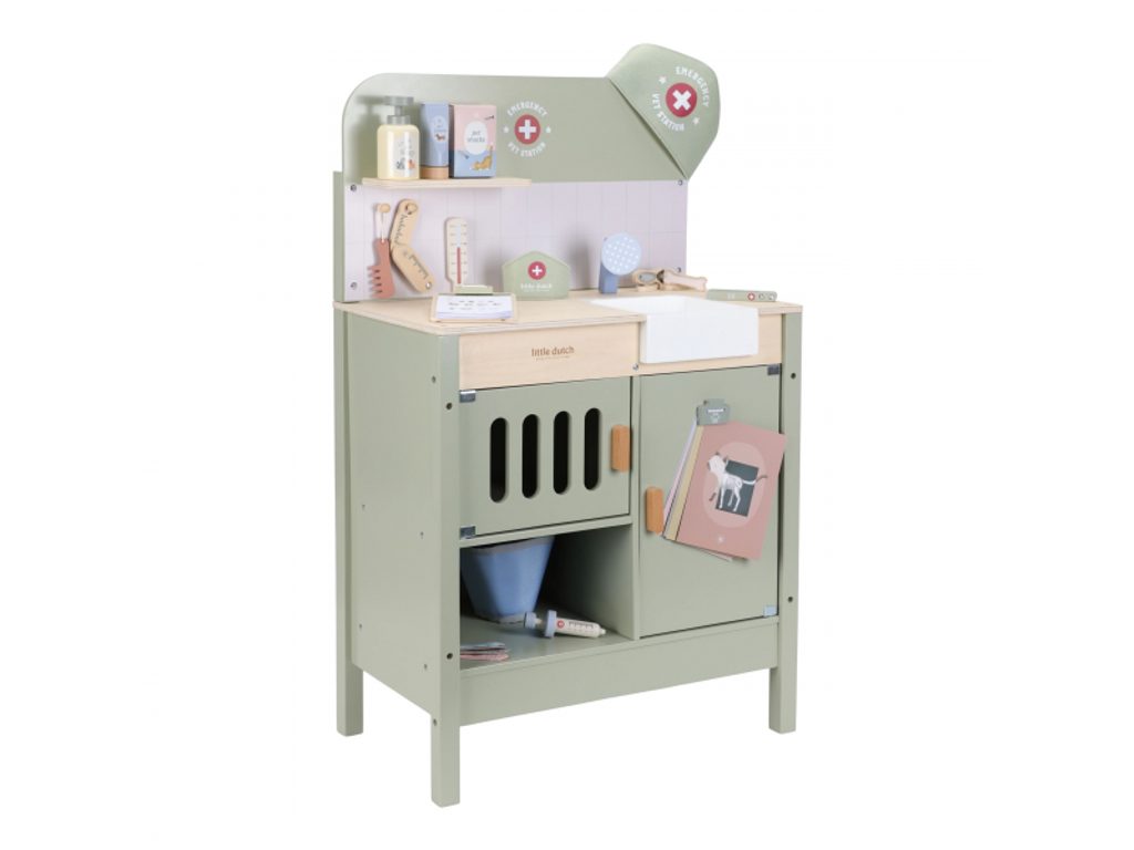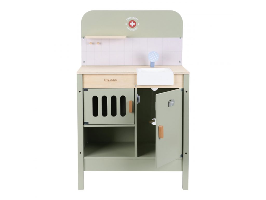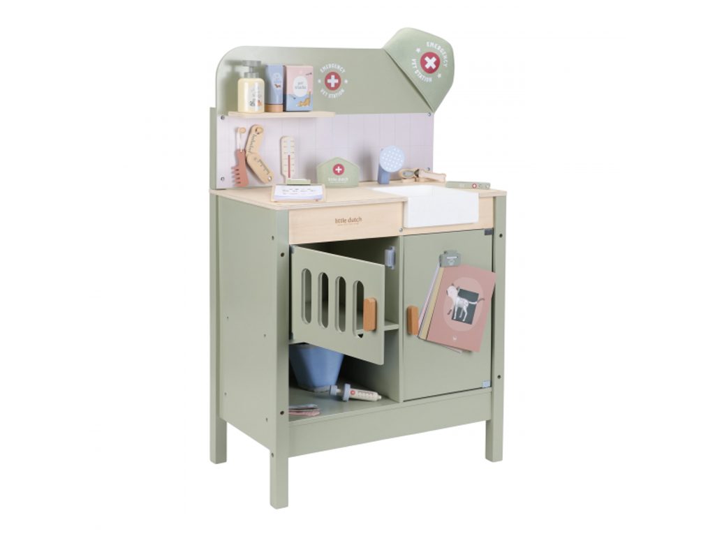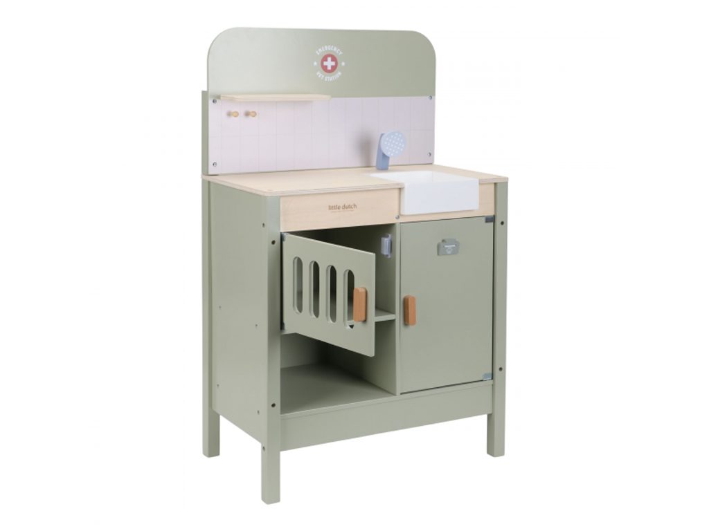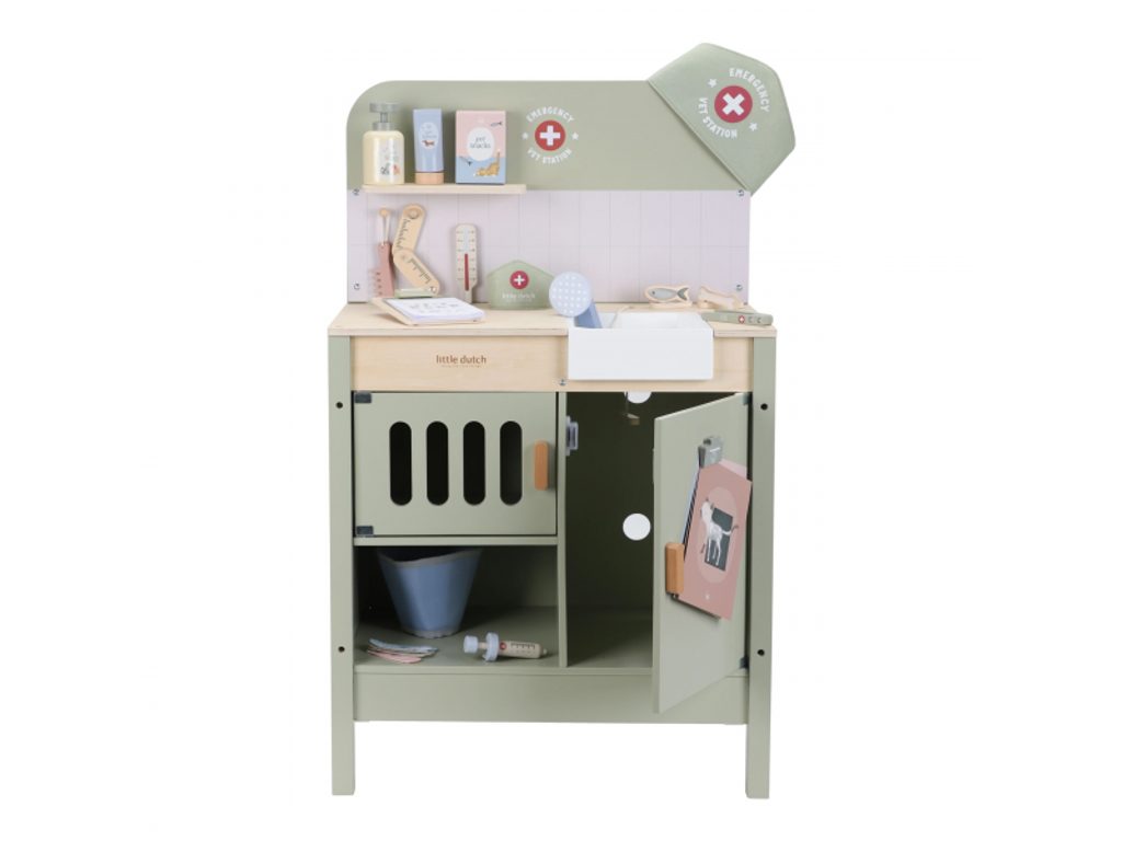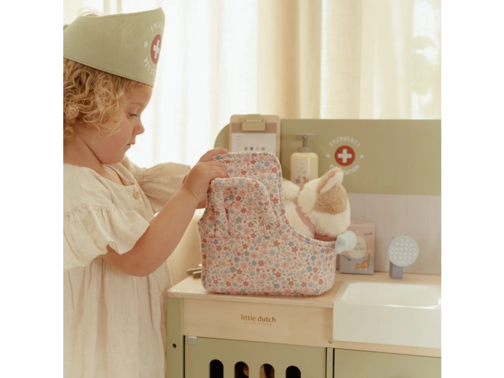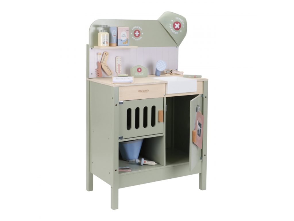 Dřevěná veterinární ordinace Little Dutch je skvělým dárkem pro děti, které milují zvířátka a péči o ně. Díky realistickým doplňkům se malí ošetřovatelé snadno ponoří do světa péče o nemocné mazlíčky. Připravte se na spoustu příběhů ze života plyšových zvířátek a nekonečné hodiny zábavného hraní! Součástí ordinace je vše potřebné pro vyšetření i ošetření – umyvadlo s výsuvnou sprchovou hlavicí, hřeben, teploměr, injekce, náplasti, látková čelenka i speciální klips na zavěšení lékařských ilustrací a rentgenů. Podporuje kreativitu, představivost a rozvoj sociálních dovedností Bohaté příslušenství pro realistickou hru na veterináře Ideální pro malé milovníky zvířat a hry na povolání Robustní dřevěné provedení pro dlouhou životnost Rozměry: 50,5 × 28,5 × 83,2 cm Hmotnost: 7,34 kg Hračka je součástí kolekce vysoce kvalitních dřevěných hraček Little Dutch, navržených s důrazem na bezpečnost a originální design. Vyrobeno z odolného FSC certifikovaného dřeva. Vhodné pro děti od 3 let.