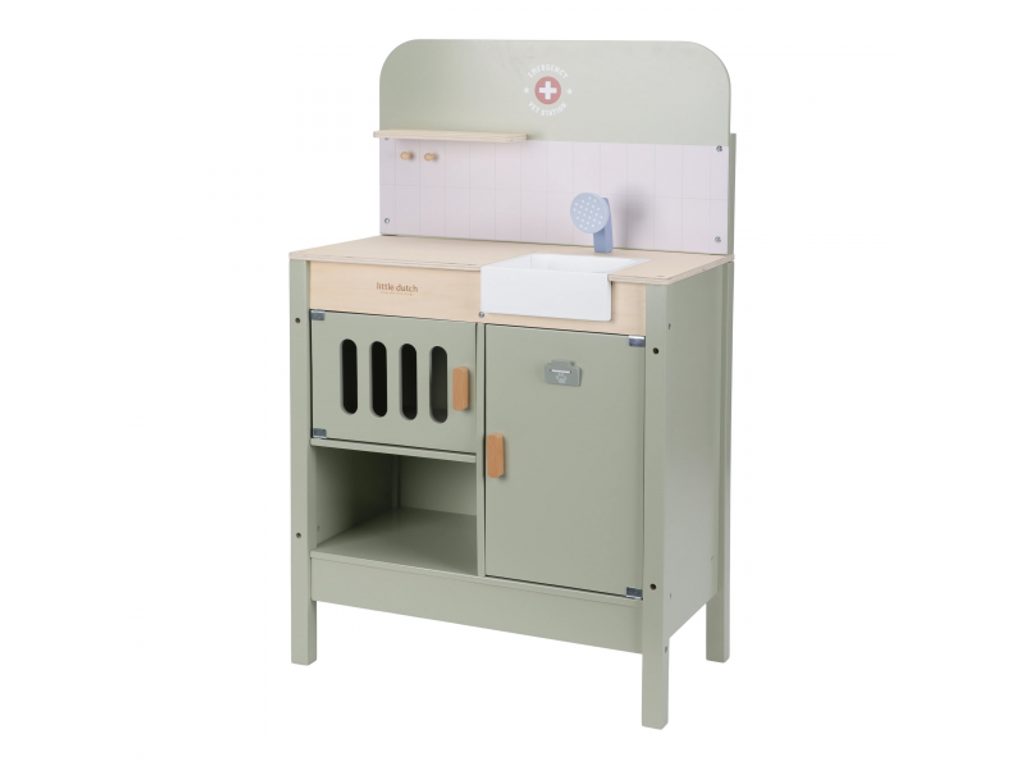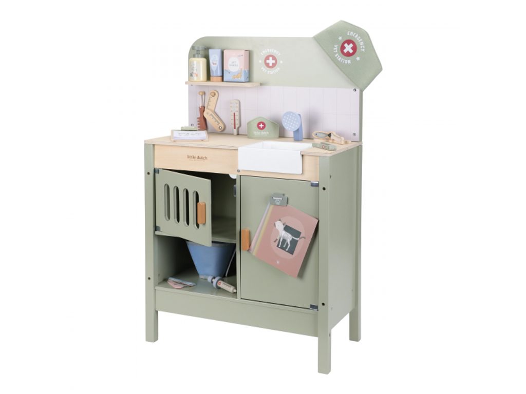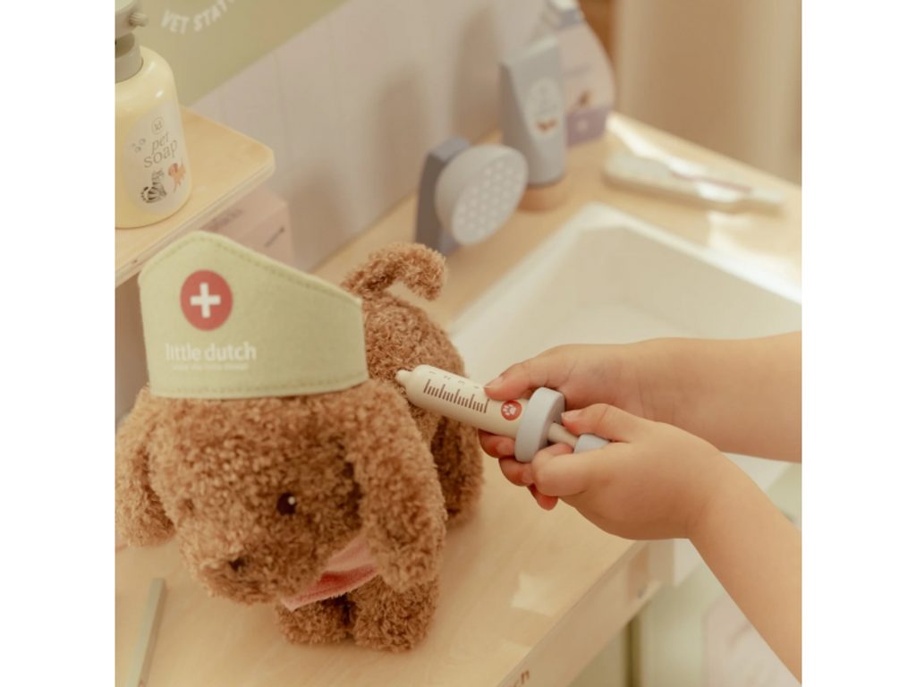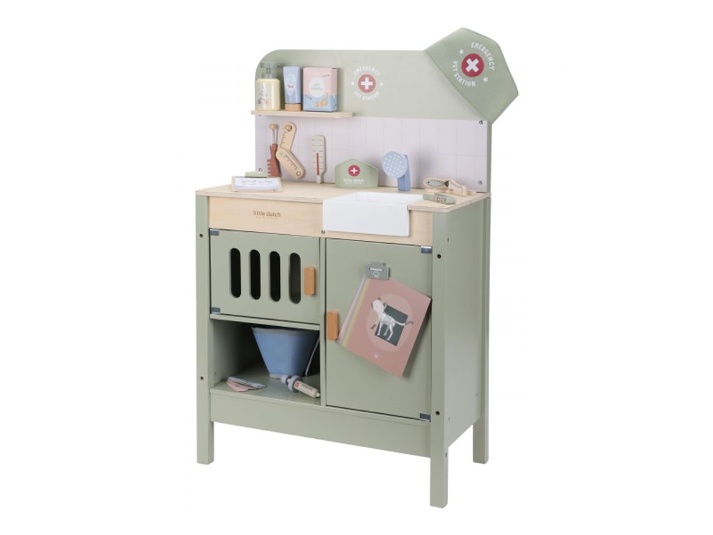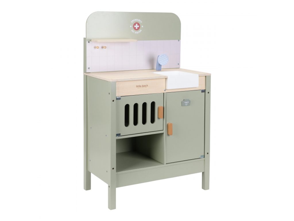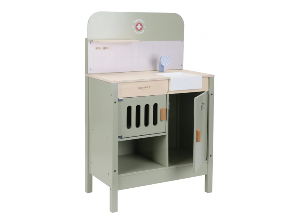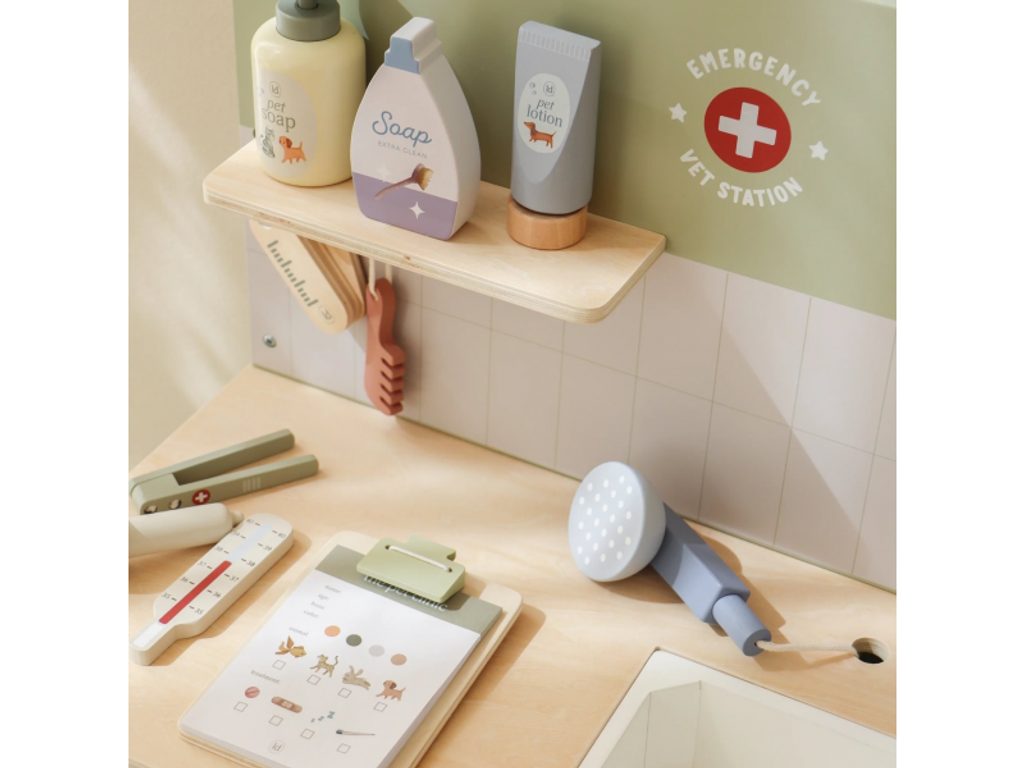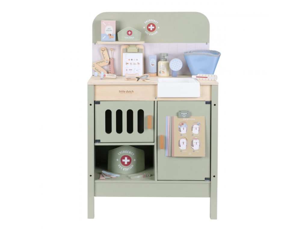 Dřevěná veterinární ordinace Little Dutch je skvělým dárkem pro děti, které milují zvířátka a péči o ně. Díky realistickým doplňkům se malí ošetřovatelé snadno ponoří do světa péče o nemocné mazlíčky. Připravte se na spoustu příběhů ze života plyšových zvířátek a nekonečné hodiny zábavného hraní! Součástí ordinace je vše potřebné pro vyšetření i ošetření – umyvadlo s výsuvnou sprchovou hlavicí, hřeben, teploměr, injekce, náplasti, látková čelenka i speciální klips na zavěšení lékařských ilustrací a rentgenů. Podporuje kreativitu, představivost a rozvoj sociálních dovedností Bohaté příslušenství pro realistickou hru na veterináře Ideální pro malé milovníky zvířat a hry na povolání Robustní dřevěné provedení pro dlouhou životnost Rozměry: 50,5 × 28,5 × 83,2 cm Hmotnost: 7,34 kg Hračka je součástí kolekce vysoce kvalitních dřevěných hraček Little Dutch, navržených s důrazem na bezpečnost a originální design. Vyrobeno z odolného FSC certifikovaného dřeva. Vhodné pro děti od 3 let.