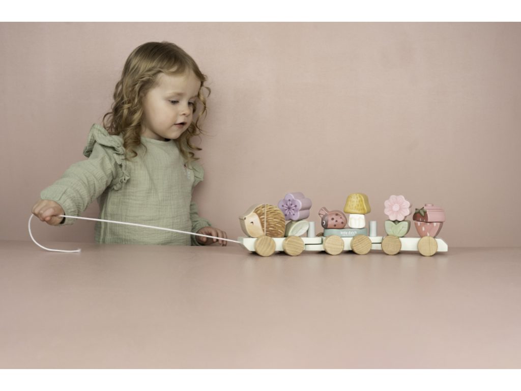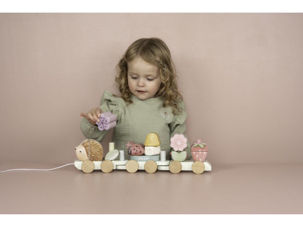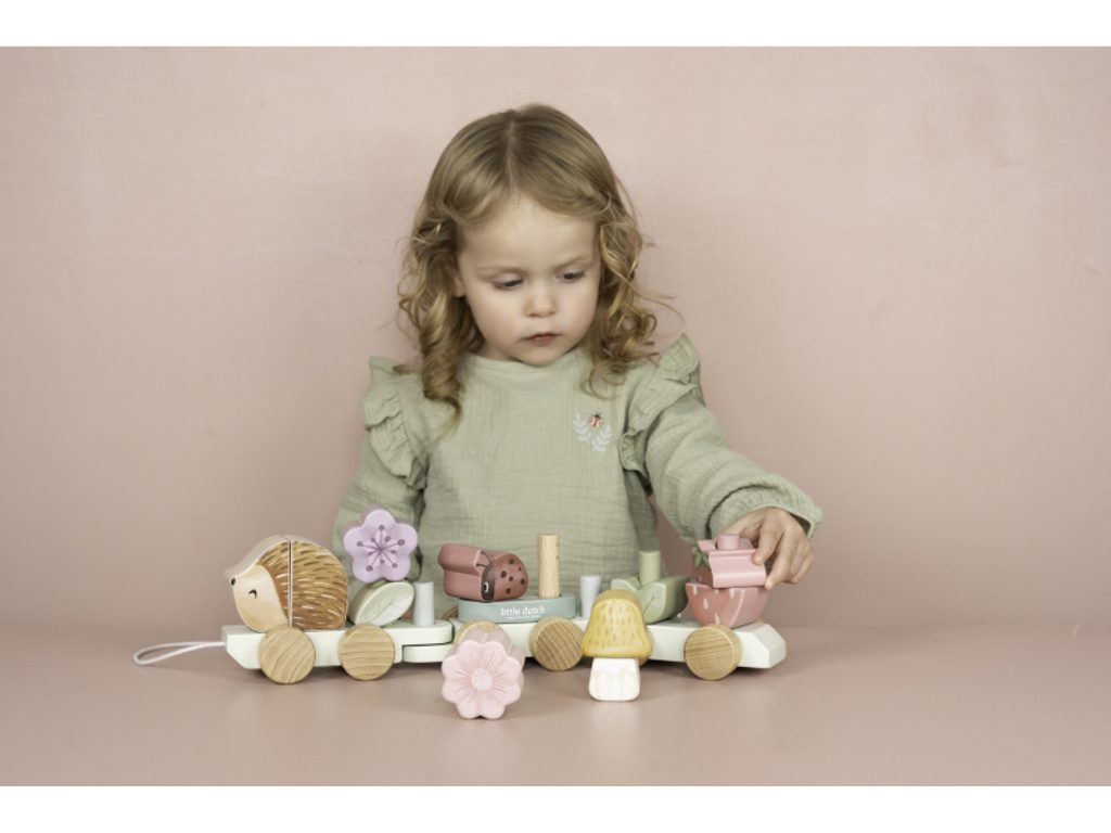 Objevte kouzlo originálního dřevěného vláčku z dílny Little Dutch, který je vyroben z barevných kostek ve tvaru ježka, berušky, houby, květin a jahody. Děti si mohou díky kombinaci těchto kostek vytvářet vlastní unikátní varianty vagónů, což podněcuje jejich fantazii a kreativitu. Vláček nabízí vašemu dítěti nekonečné hodiny zábavy a zároveň se může stát nádhernou dekorací v dětském pokoji.