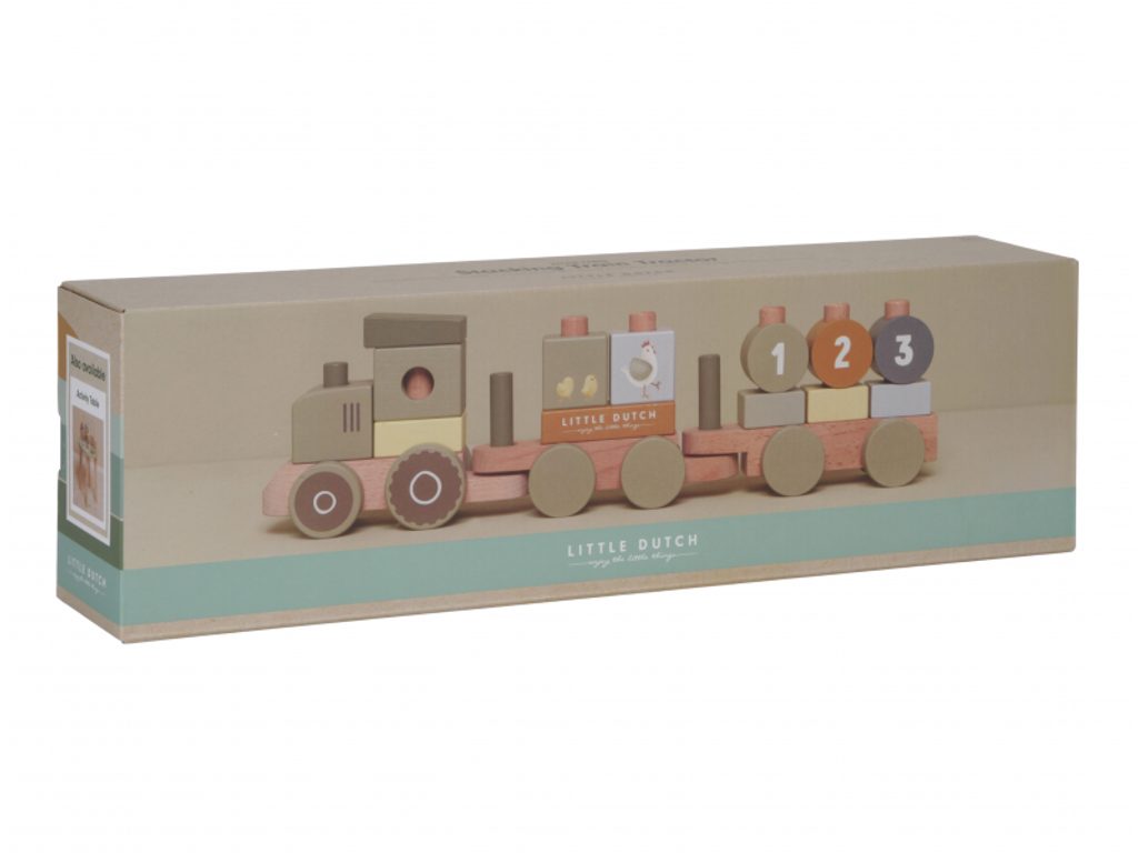Originální dřevěný vláček z dílny Little Dutch je tvořen kostkami různých barev a tvarů. Kombinováním kostek si vaše dítě může sestavovat různé varianty vagónů dle své fantazie. Vláček zajistí vašemu dítěti spoustu zábavy a může sloužit i jako krásná dekorace v dětském pokoji. Hračka je součástí designové kolekce hraček a doplňků Little Dutch Farma. Vyrobeno z dřeva certifikovaného FSC. Rozměry: 44 x 12,5 x 7,8 cm Vhodné pro děti od 12 měsíců.