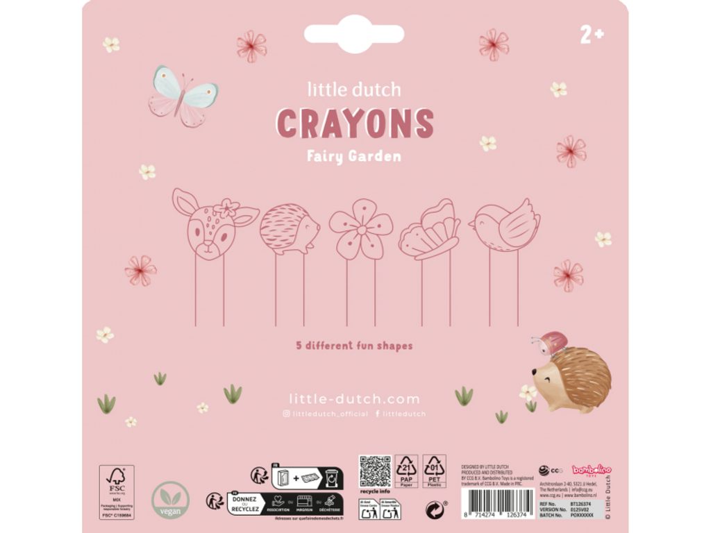 Kvalitní voskovky v 5 barvách přinesou vašim dětem hodiny kreativní zábavy. Každá voskovka je zakončena roztomilou postavičkou, která láká ke hře a dělá z kreslení ještě větší zábavu. Ideální pro první výtvarné pokusy: Snadno uchopitelné i pro malé děti – perfektní pro první čárky, tvary i obrázky Voskovky jsou měkké, hladce kloužou po papíře Postavičky podporují rozpoznávání tvarů a barev Vyrobeno z netoxických materiálů, bezpečné pro děti Vhodné pro každodenní tvoření doma, ve školce nebo na cestách Podporují rozvoj dovedností: Zlepšují úchop a koordinaci oka a ruky Pomáhají rozvíjet jemnou motoriku Umožňují dětem vyjadřovat se kreativně a učí je pracovat s barvami Rozvíjejí fantazii a trpělivost prostřednictvím hry Voskovky jsou součástí designové kolekce hraček a doplňků Little Dutch Fairy Garden inspirované životem na zahradě. Vhodné pro děti od 2 let.