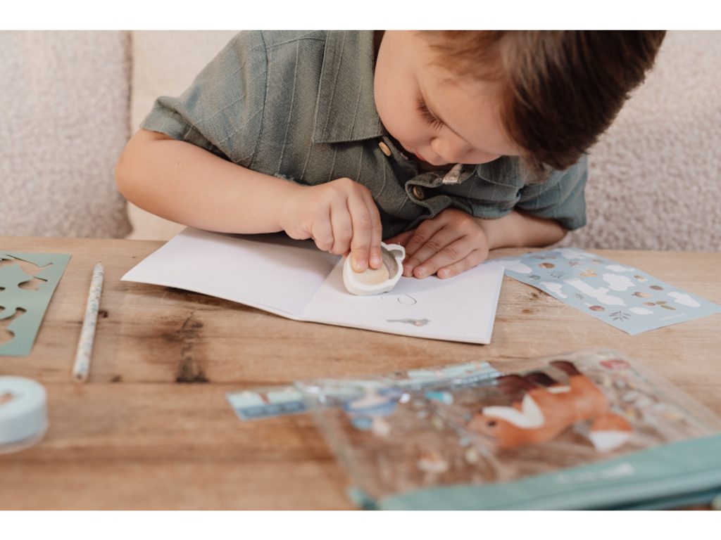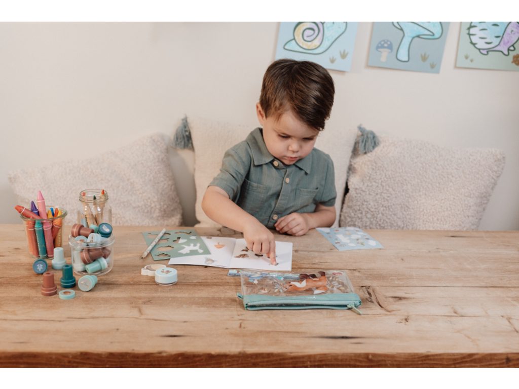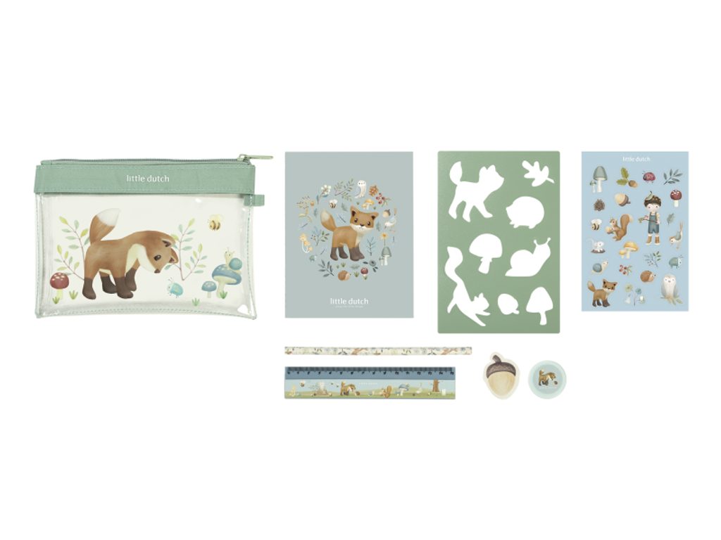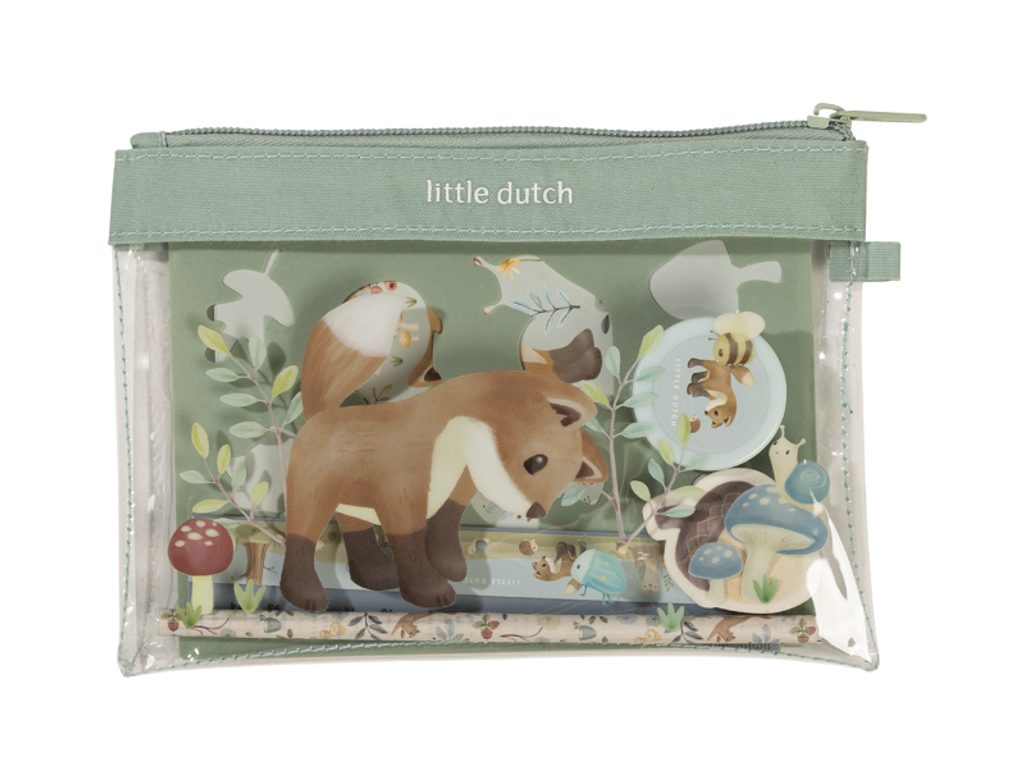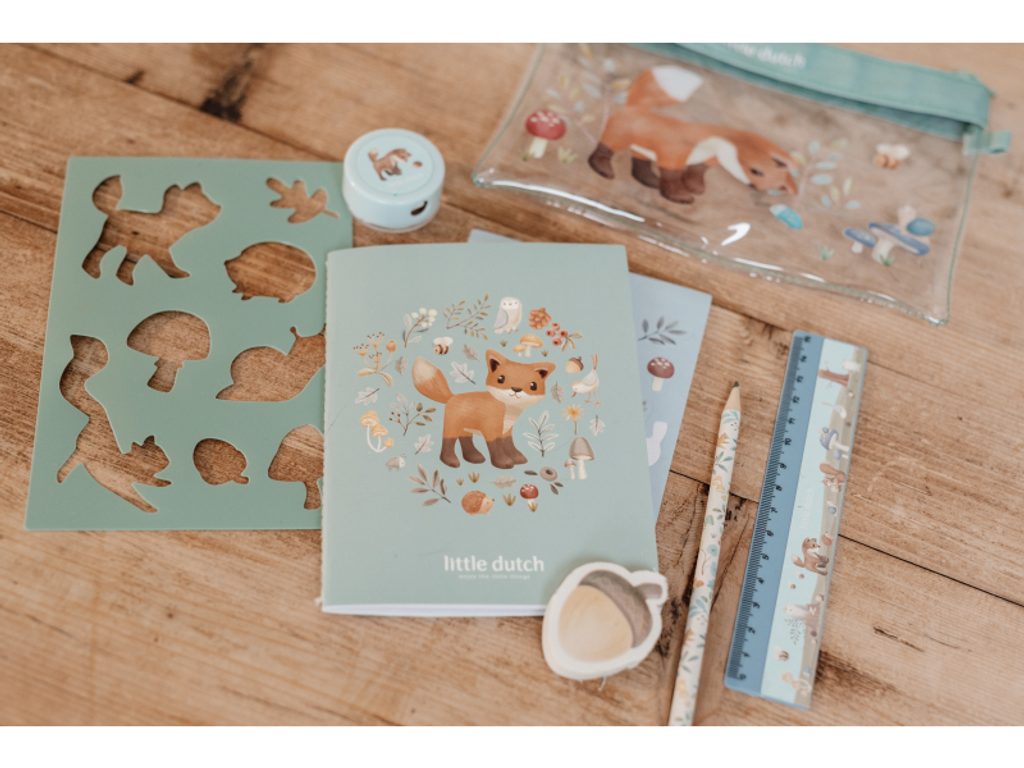 Sada výtvarných potřeb v krásném provedení s motivy života v lese obsahuje vše, co malí umělci potřebují k rozvoji své kreativity. Součástí sady je průhledné pouzdro na zip, sešit, samolepky, pravítko, guma, ořezávátko a šablony. Tato sada je součástí designové kolekce Little Dutch Forest Friends, inspirované kouzlem života v lese.