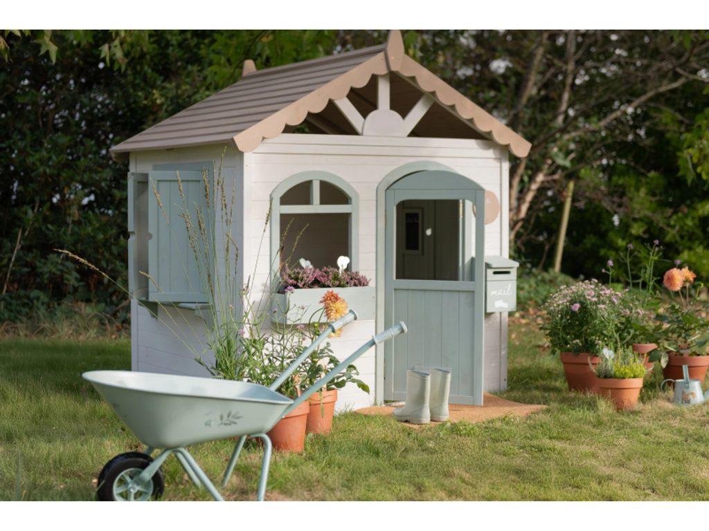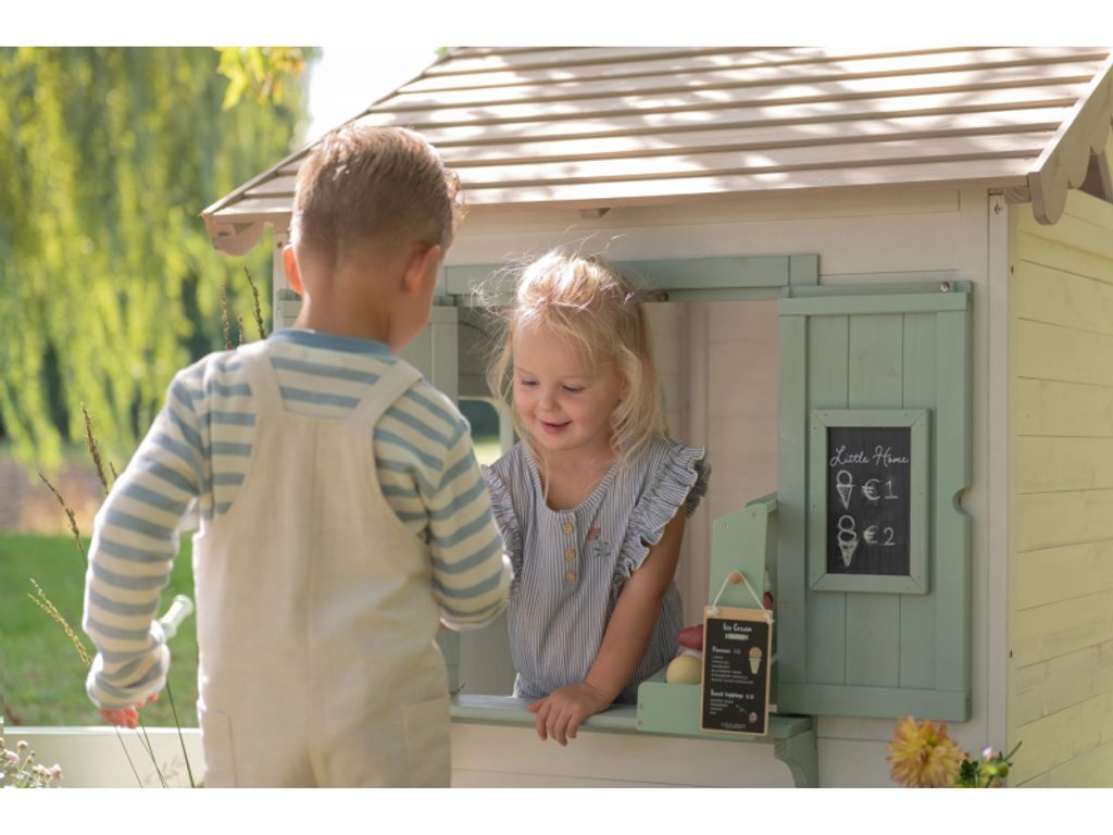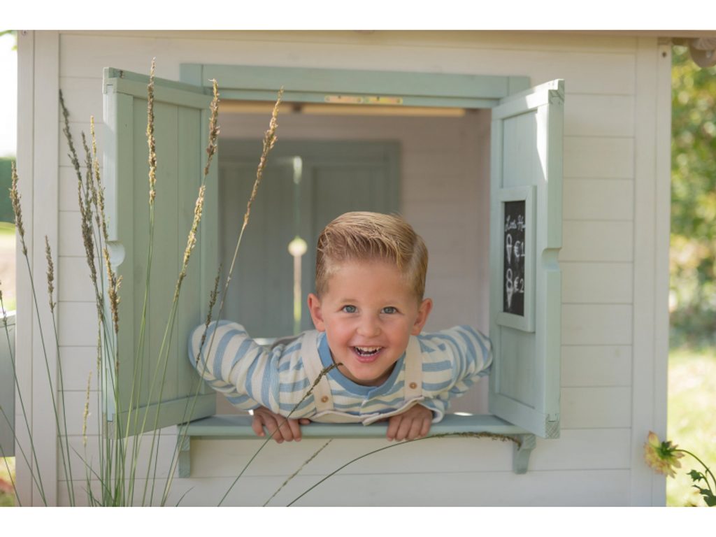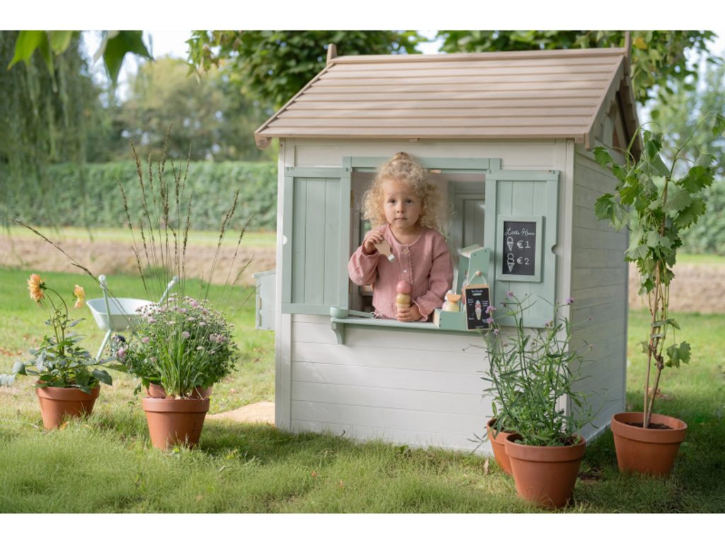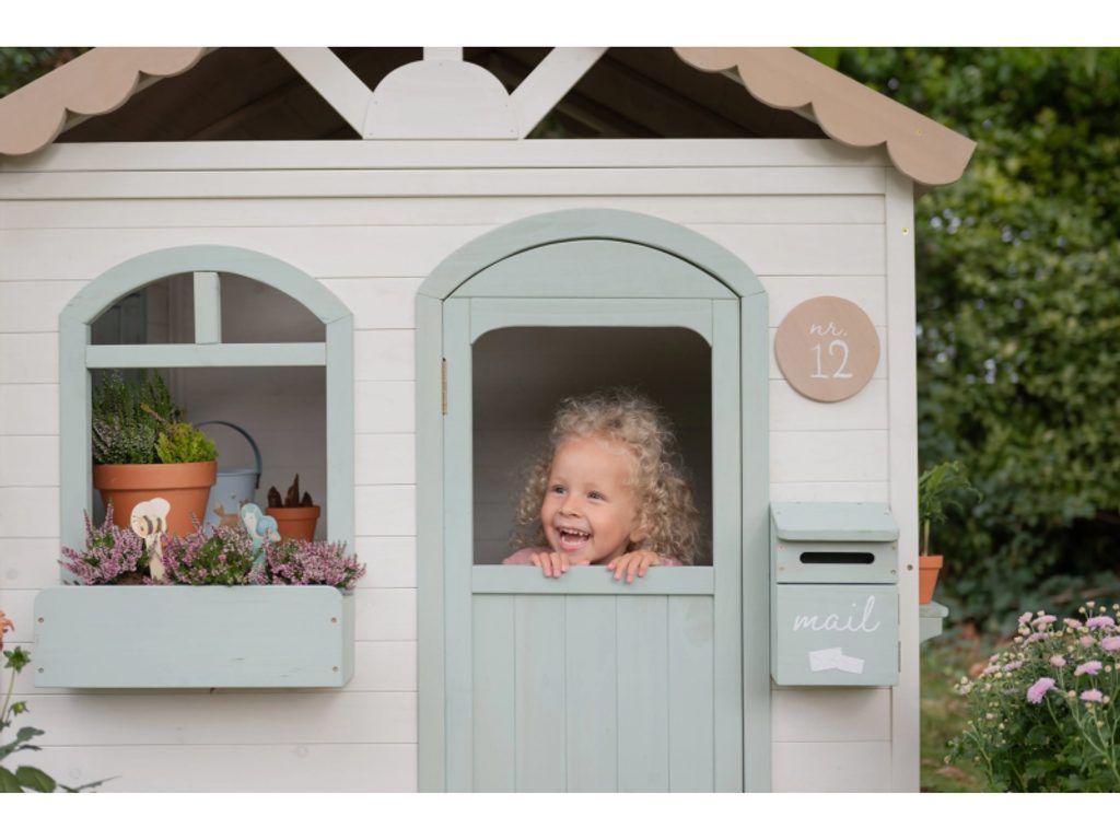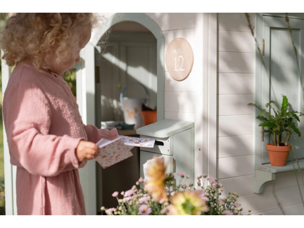 Zahradní domek je navržen tak, aby dětem nabídl skutečný pocit vlastního prostoru. Dveře a okna umožňují snadný vstup i výstup, otevírací okenice lákají k dekorování a poštovní schránka přidává kouzelný detail, který hru obohacuje o příběh. Domek přirozeně inspiruje k celé řadě her: