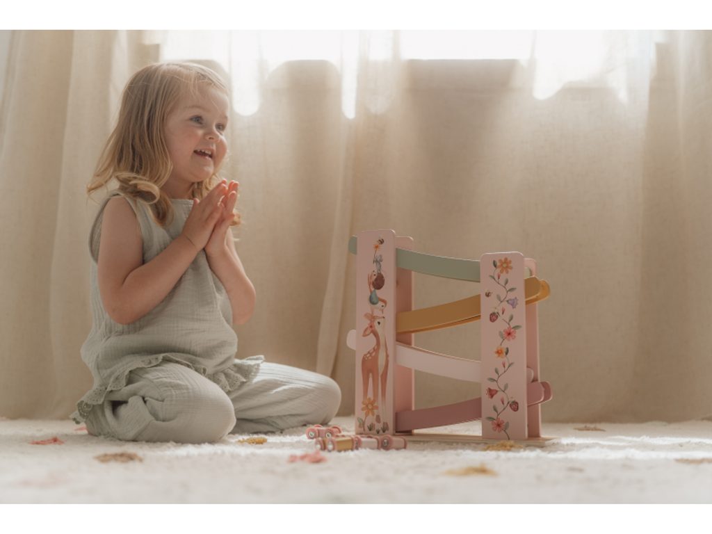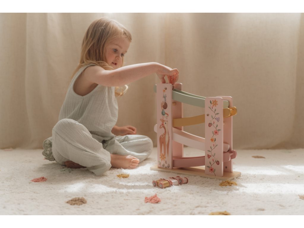 Krásná závodní dráha Little Dutch s čtyřmi autíčky poskytne vašemu dítěti hodiny zábavy! Každé autíčko je zdobeno obrázkem jednoho zvířátka a závodí tak ježek, motýl, beruška a ptáček. Dráha je potištěna jemnými motivy ze života na zahradě, které dodávají hračce kouzelný vzhled. Díky kvalitnímu dřevěnému provedení je dráha stabilní a může se stát také krásnou dekorací v dětském pokoji.