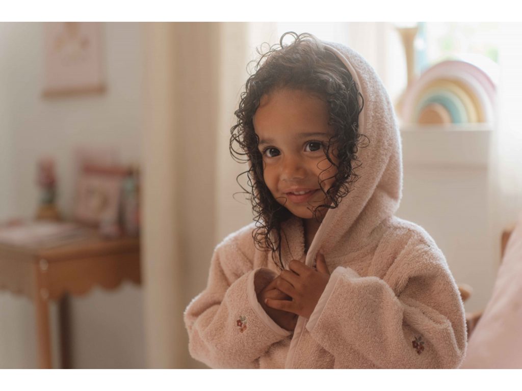 Měkký froté župan s kapucí je ideální pro zahřátí a snadné osušení vašeho dítěte po koupeli nebo plavání. Župan z příjemné 100% organické bavlny s vyšívanými kytičkami se zapíná s pomocí zavazovacího pásku. Župan je součástí designové kolekce textilu, hraček a doplňků Little Dutch Fairy Garden inspirované životem na zahradě.