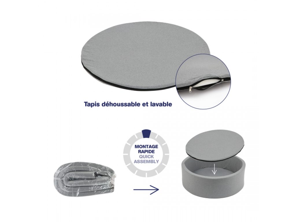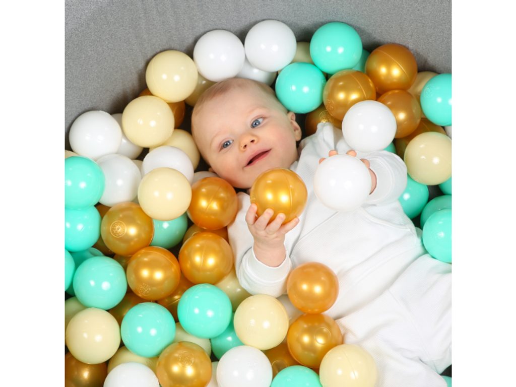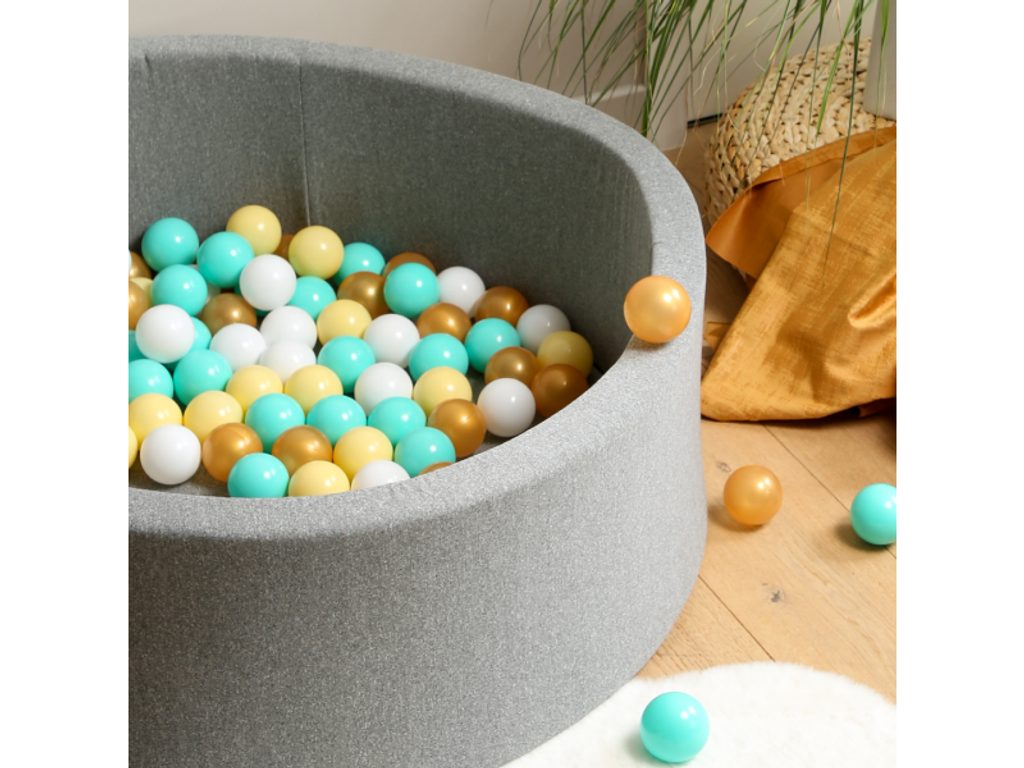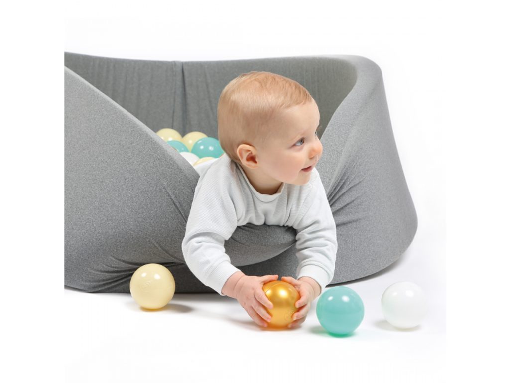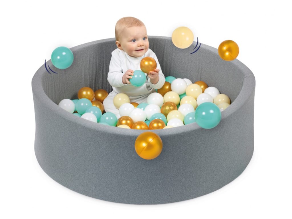Tato elegantní textilní hrací ohrádka v jemně šedém odstínu krásně zapadne do každého interiéru a promění dětský pokoj ve stylový a bezpečný prostor na hraní. Je ideální pro první objevování světa – od válení po házení – a nabízí nekonečné hodiny smyslové zábavy. Více než jen ohrádka: Ohrádka je naplněna jemnými plastovými míčky v pastelových barvách, které stimulují dětské smysly a podporují rozvoj motoriky a koordinace Díky svým rozměrům poslouží také jako měkká hrací plocha, místo pro lezení nebo úložný prostor na hračky Každé hraní se tak stává novým dobrodružstvím – hravým i rozvojovým Ohrádka je lehká, snadno přenosná a připravená ke hře během chvilky. Snímatelný potah je možné prát. Rozměry ohrádky: Ø 90 × výška 30 cm Rozměr míčků: Ø 6 cm Složení: 100 % polyester, míčky 100% PVC Vhodné pro děti od 6 měsíců