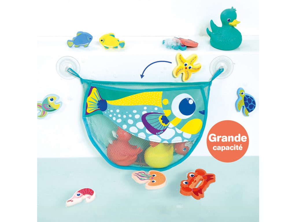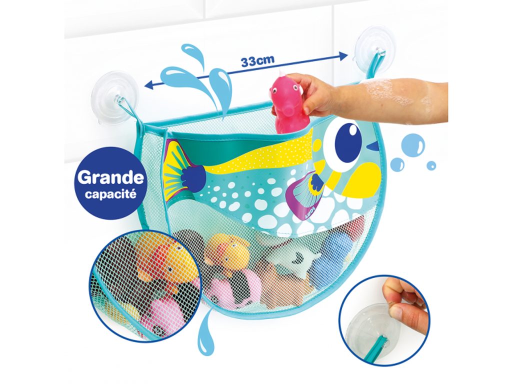 Originální tvar ryby přináší do koupelny hravý a veselý prvek, který děti baví. Koupání se stává zábavnějším a úklid hraček přirozenou součástí každodenní rutiny.