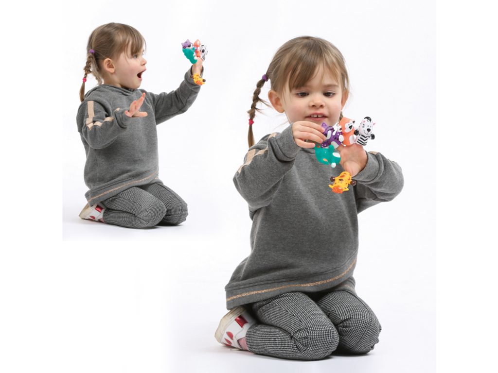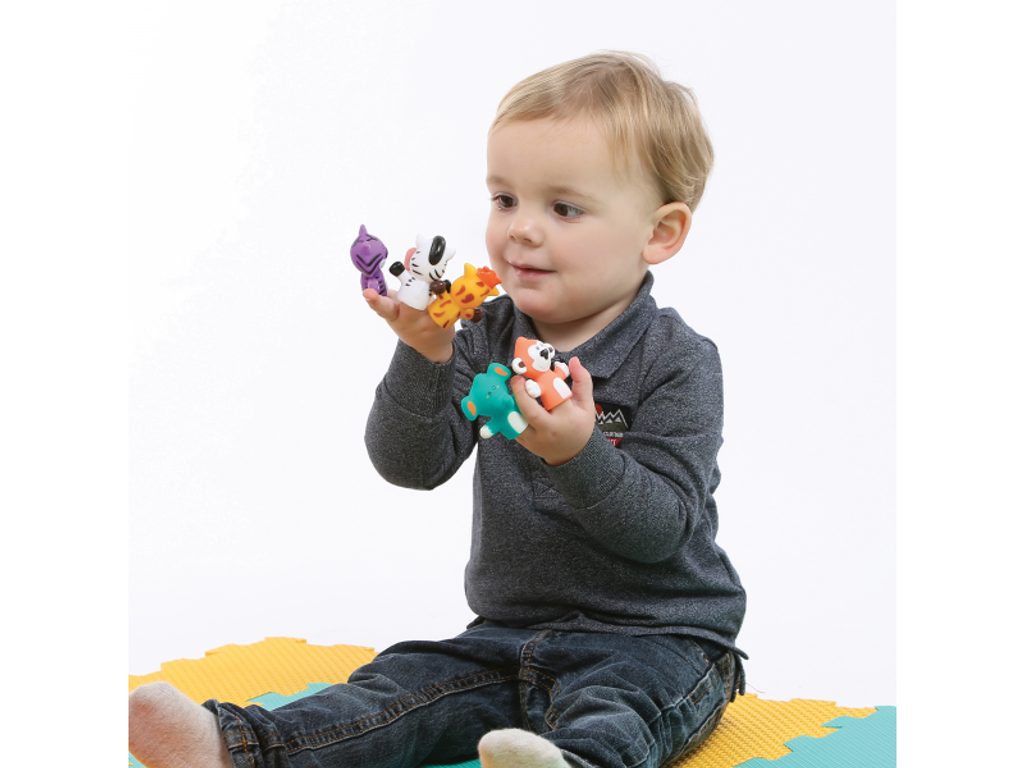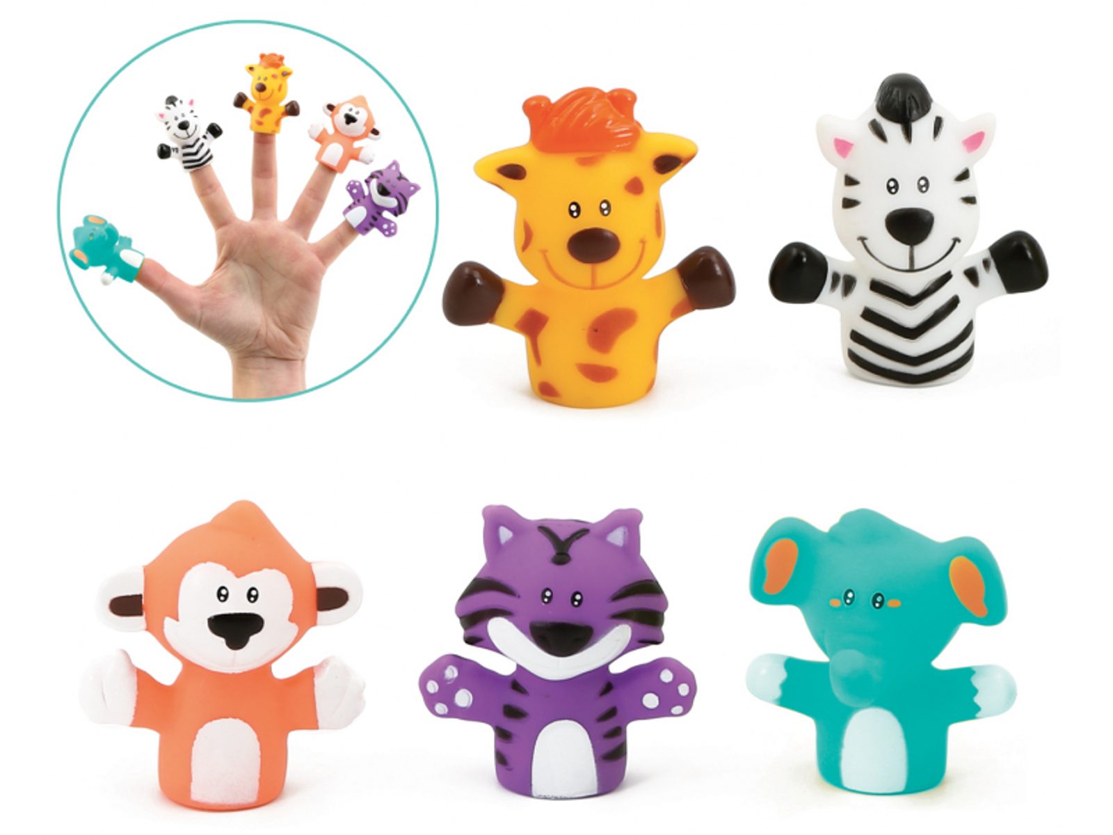Sada originálních prstových maňásků nabízí skvělý způsob, jak si užít vyjímečné chvíle s vaším dítětem, jako je čas koupání nebo povídání před spaním. Vymýšlejte si spolu příběhy o pěti zvířecích kamarádech a rozvíjejte tak zábavným způsobem představivost a slovní zásobu dítěte. Nejdříve se naučí poznávat barvy a jména zvířat, ve starším věku už si maňásky nasadí na vlastní prsty a bude vymýšlet vlastní příběhy. Balení obsahuje 5 prstových maňásků. Rozměry maňáska: 5 x 5 x 2,5 cm. Složení: PVC bez obsahu ftalátů Vhodné pro děti od 10 měsíců.