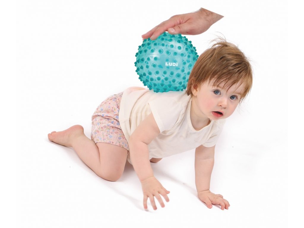 Měkký míček Ludi s výstupky je vhodný pro relaxaci i hru s vaším dítětem. Míček je ideální pro jemnou a příjemnou masáž. Při držení míčku rukama nebo šlapáním na míček bosými nožičkami stimuluje rozvoj smyslů dítěte a pomáhá rozvoji rovnováhy, která je důležitá pro první kroky dítěte. Házení, kutálení a chytání míčku pomáhá i rozvoji motorických dovedností a koordinace dítěte. Průměr míčku 20 cm. Vhodné od 6 měsíců.