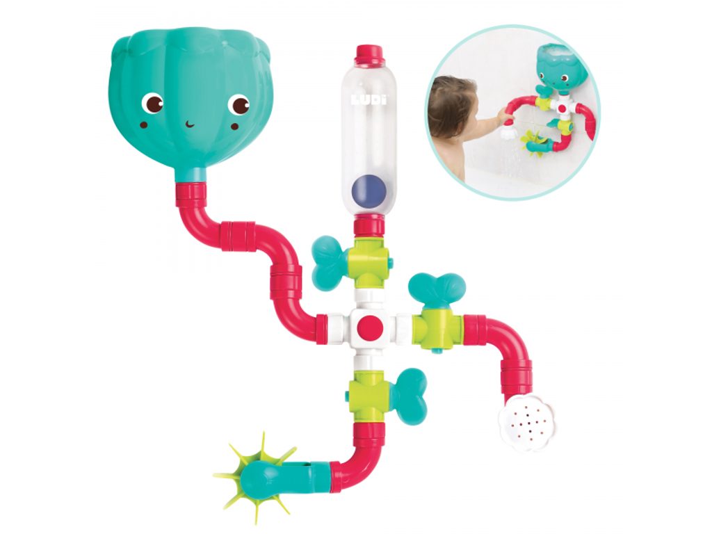 S touto hračkou do koupele nebude ve vaně nikdy nuda! Velký vodní okruh s kohoutky, nádrží, sprchou a vodním mlýnkem nabízí mnoho variant sestavení pro zkoumání účinků vody. Když dítě nalije vodu do nádrže a otevře kohoutky, aktivuje se celý okruh! Dítě se bude bavit sledováním, jak v zásobníku vody stoupající míček indikuje hladinu vody a na druhé straně proud tekoucí vody roztáčí mlýnek. Zavíráním jednotlivých kohoutků se proud vody zastaví a dítě se tak během hry učí rozumět příčině a následku, rozvíjet své pozorovací schopnosti i svou obratnost. Hračka se snadno připevní na vanu či dlaždice s pomocí přísavek. Obsah balení: nádrž s přísavkami, konektor, 3 vodovodní kohoutky, 6 trubek, průhledný zásobník s míčkem, vodní mlýnek, vodní sprcha Vhodné pro děti od 18 měsíců.